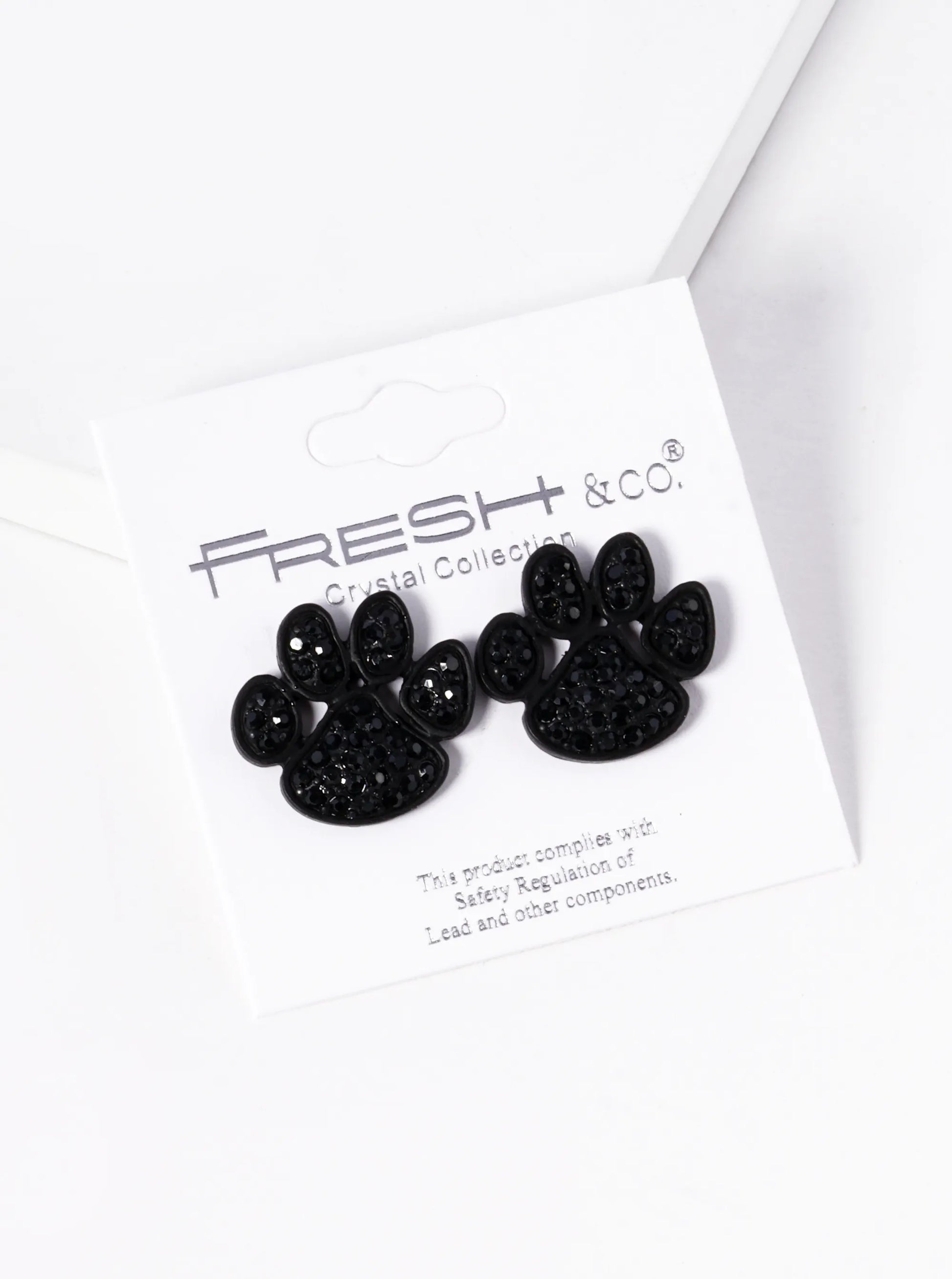 Crystal Pave Dog Paw Game Day Mascot Post Stud Earrings