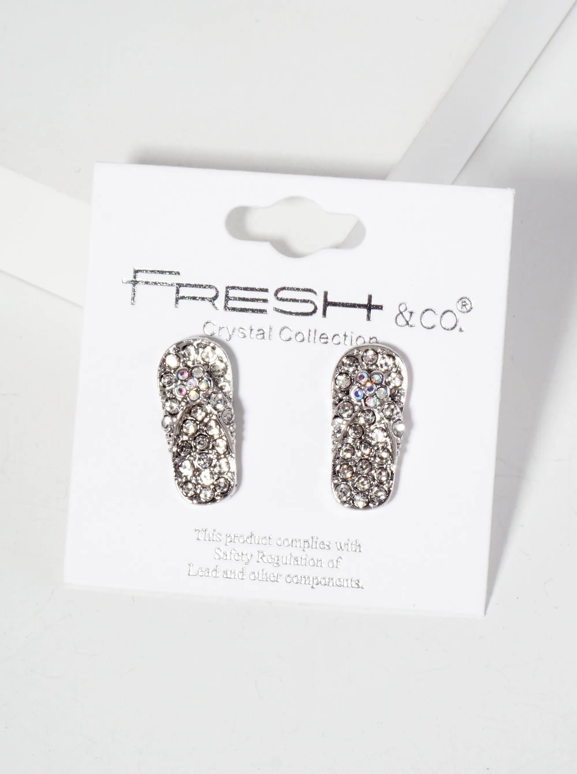 The Earrings Are A Playful And Charming Accessory That Combines Summer Vibes With A Touch Of Sparkle. Shaped Like Miniature Flip-flops, The Earrings Feature Intricate Detailing That Mimics The Straps And Soles Of The Sandals. The Flip-flops Are Adorned With Shimmering Crystal Pavé, Which Adds A Glamorous, Eye-catching Sparkle.