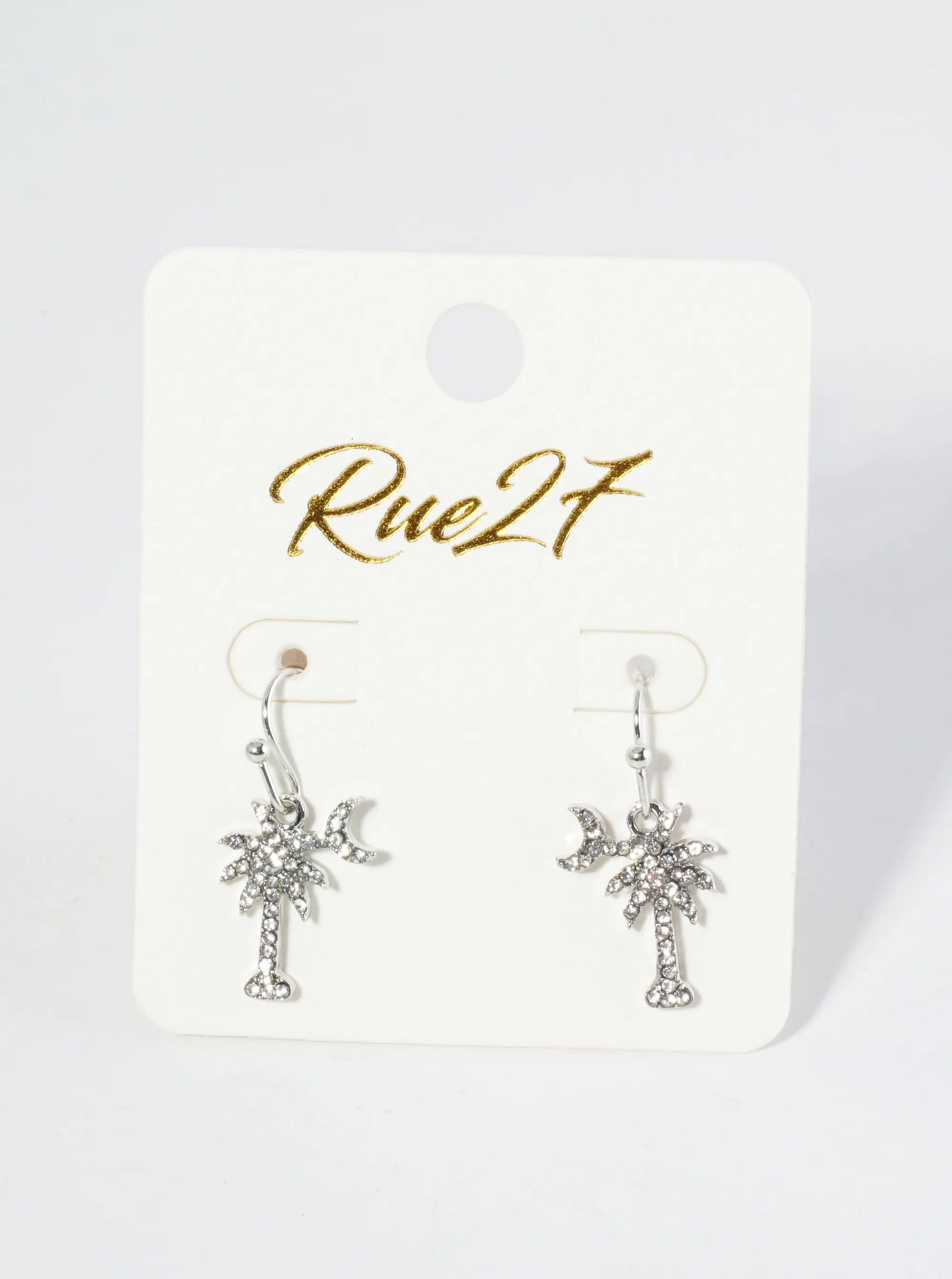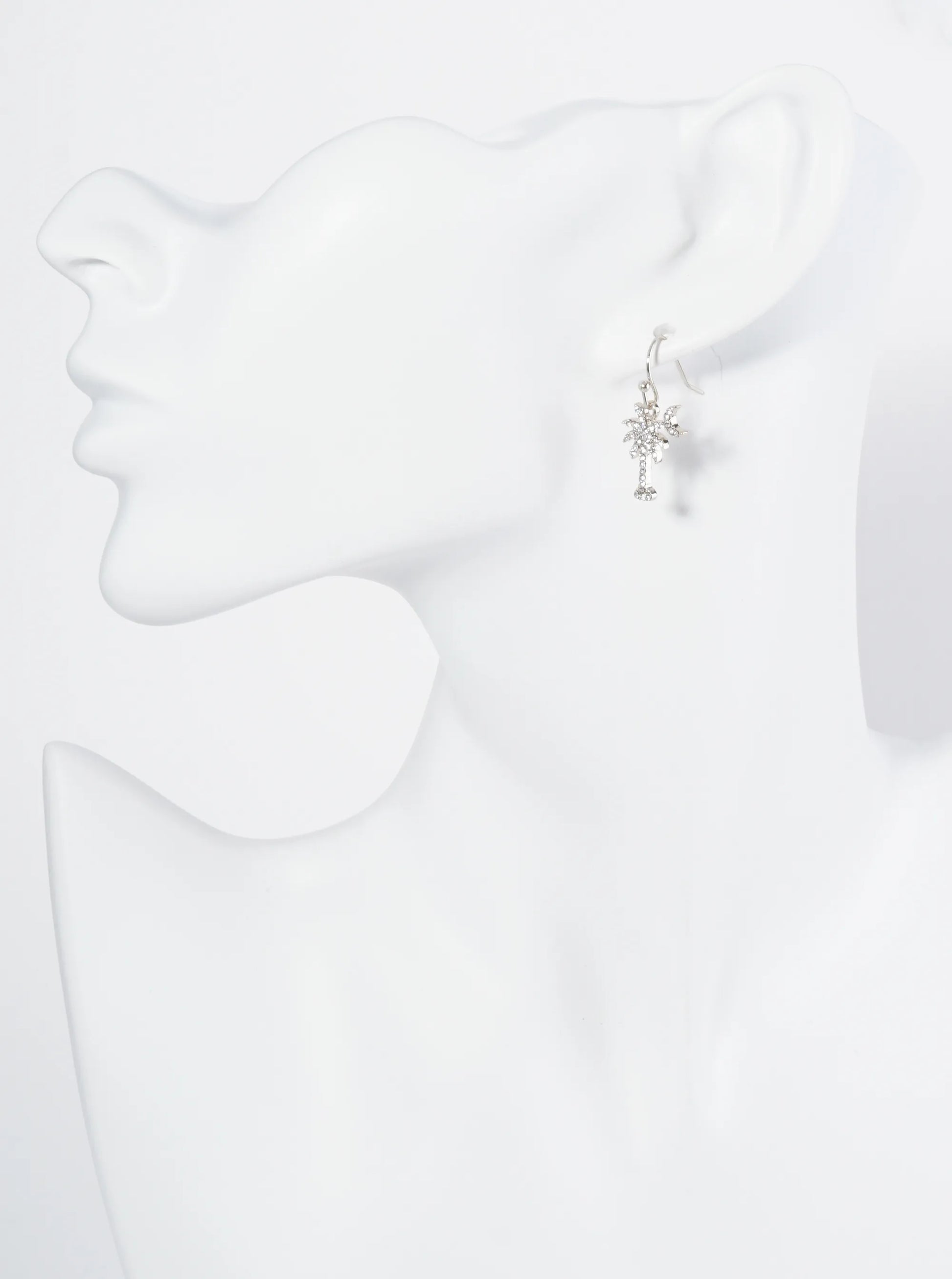 Crystal Pave Palm Tree And Moon Drop Dangle Earrings