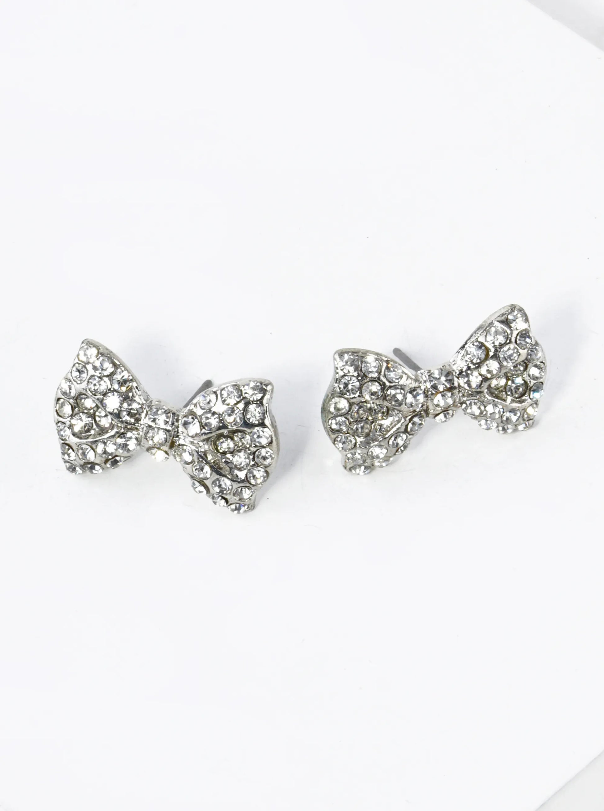 Crystal Pave Ribbon Bow Stud Earrings