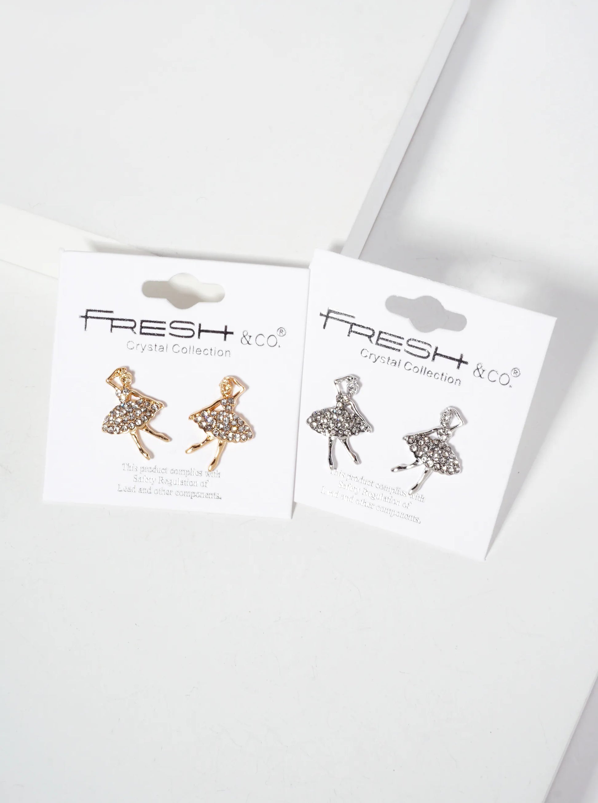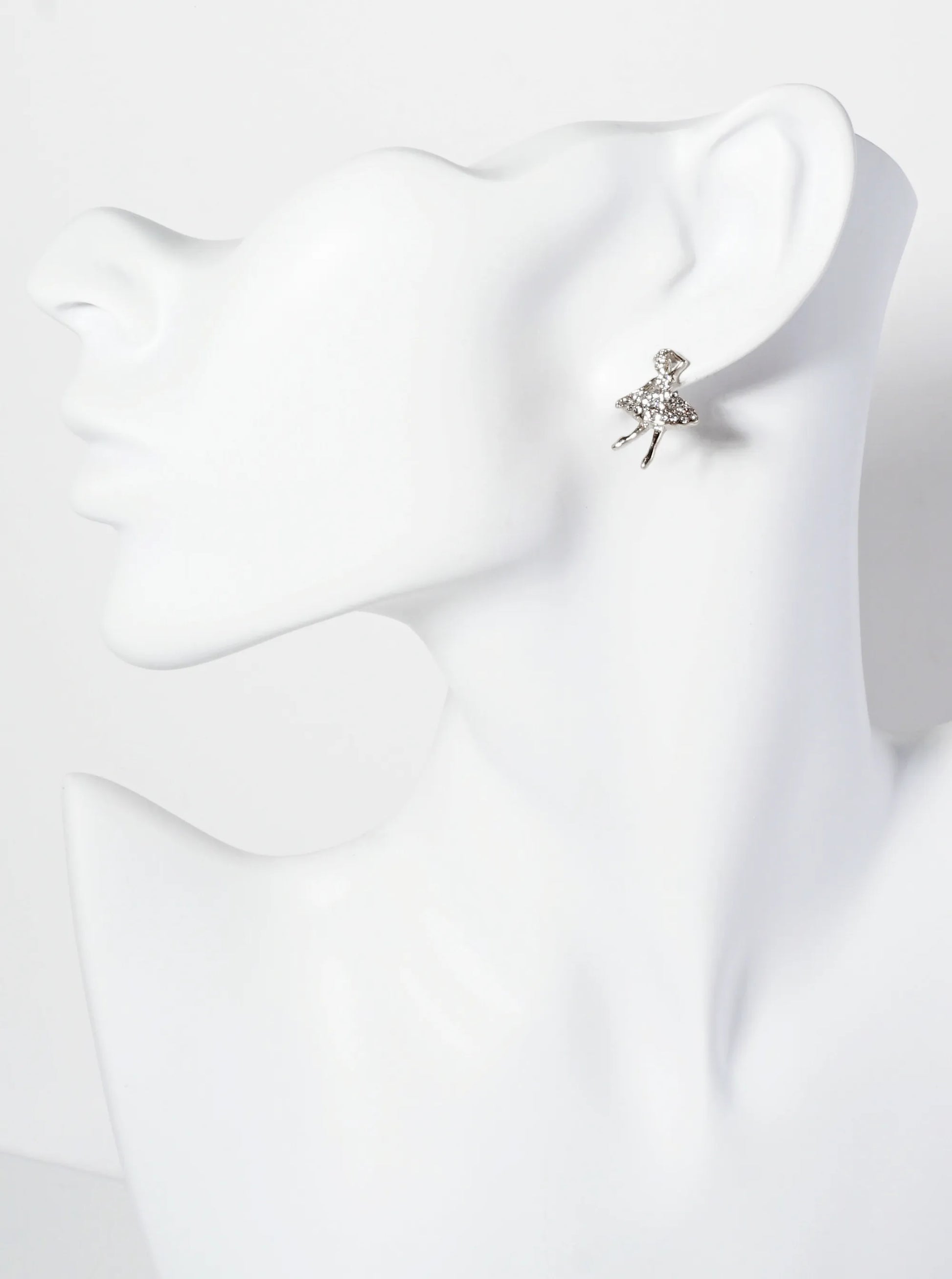 Crystal-Pave Symmetrical Ballerina Stud Earrings