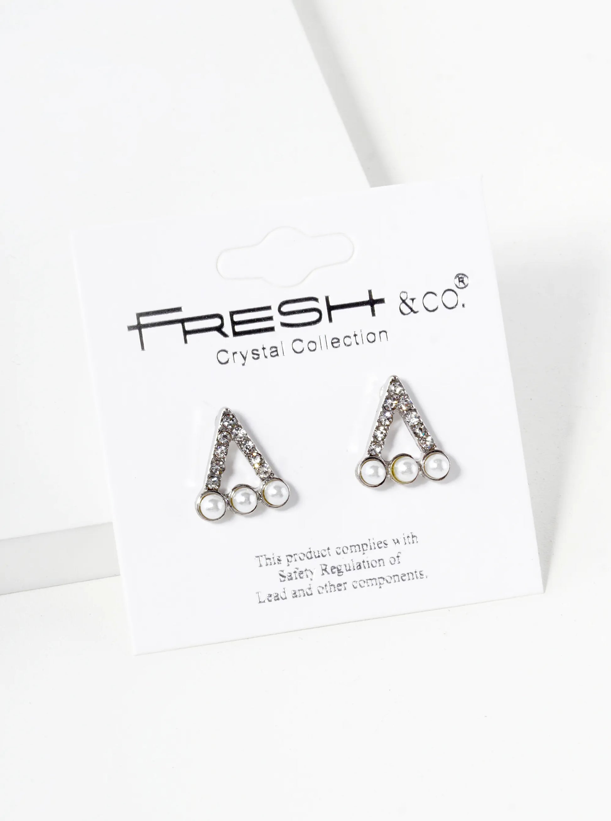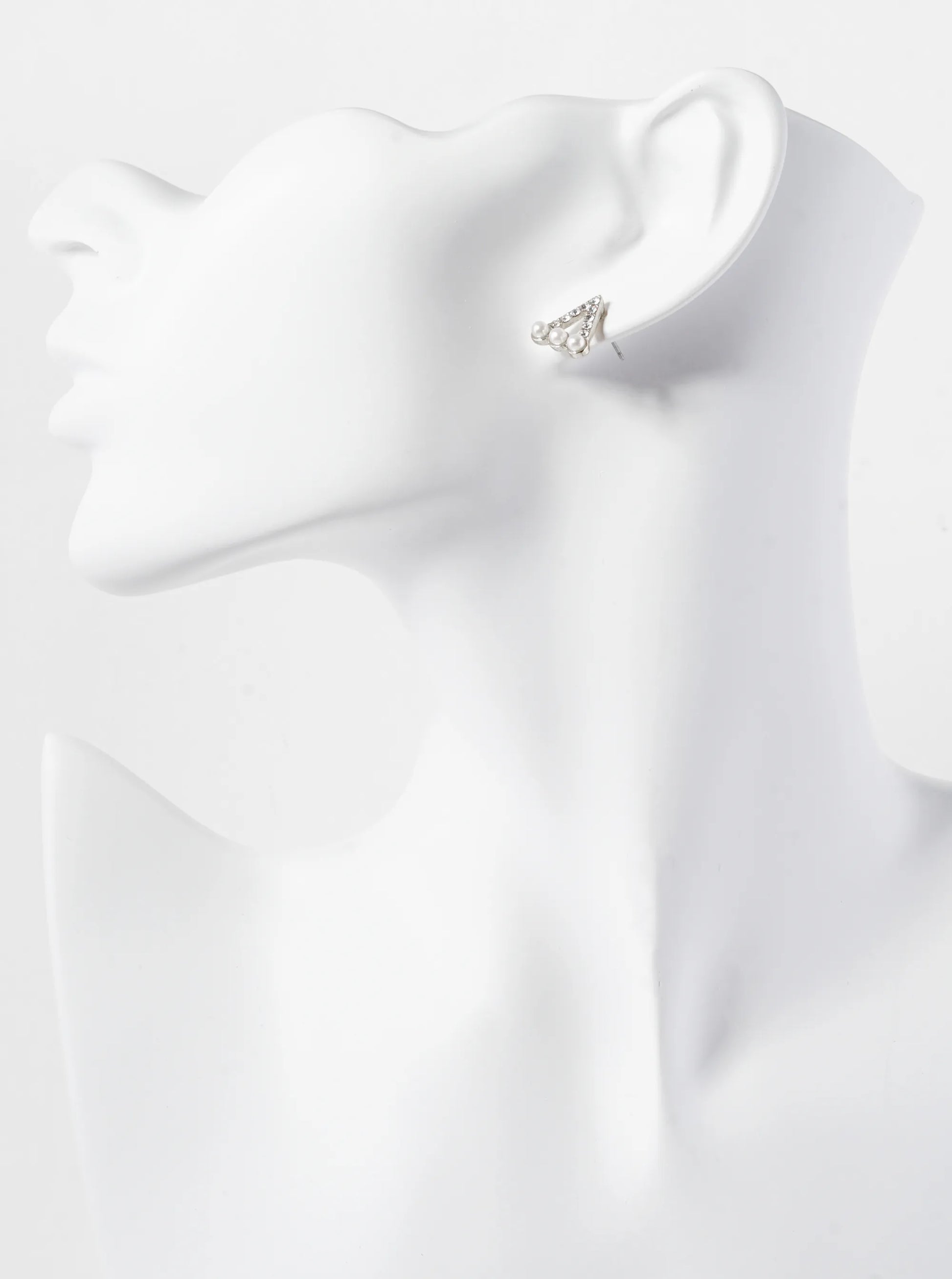 Each Earring Features A Triangular Shape Adorned With Three Pearl Beads And Surrounded By Crystal Pave. The Pearls, Likely Around 13mm In Size, Add A Classic Touch With Their Smooth And Lustrous Surfaces. The Crystal Pave Adds A Sparkling And Glamorous Element To The Design, Enhancing Its Overall Appeal. With A Stud Backing, These Earrings Are Comfortable To Wear And Easy To Style For Various Occasions. These Earrings Offer A Stylish And Refined Option, Blending Classic Pearl Elegance With Contemporary Flair.