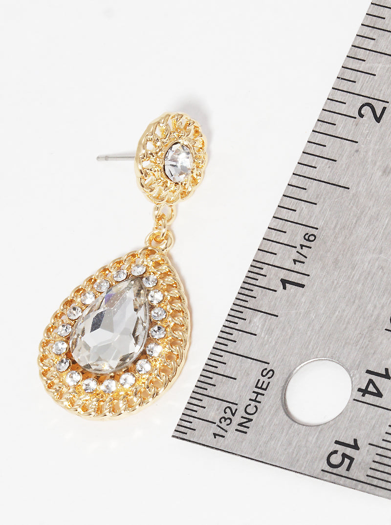 Crystal Stone Pave Teardrop Dangle Drop Earrings