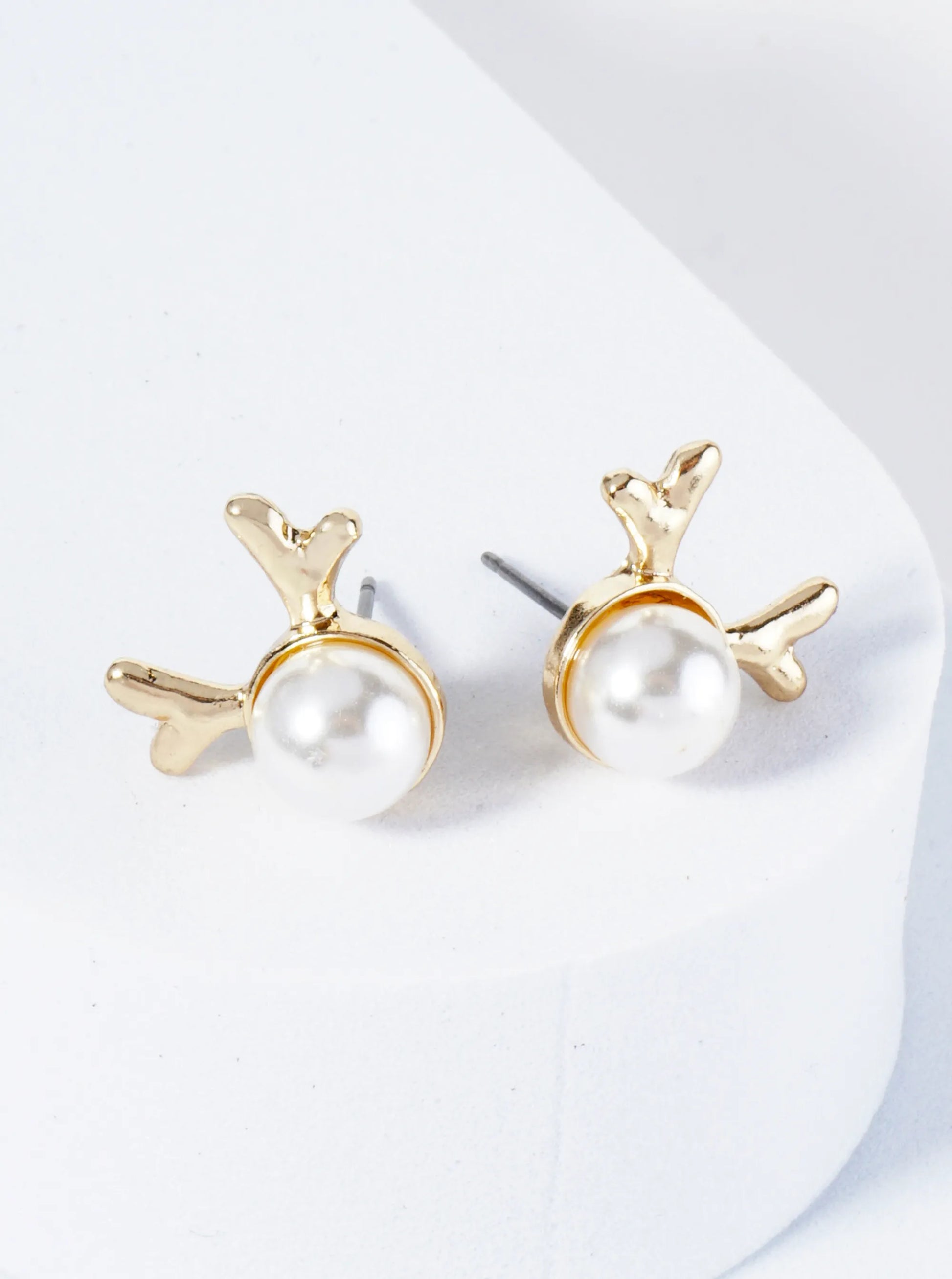 Dainty Rudolph Pearl Stud Earrings