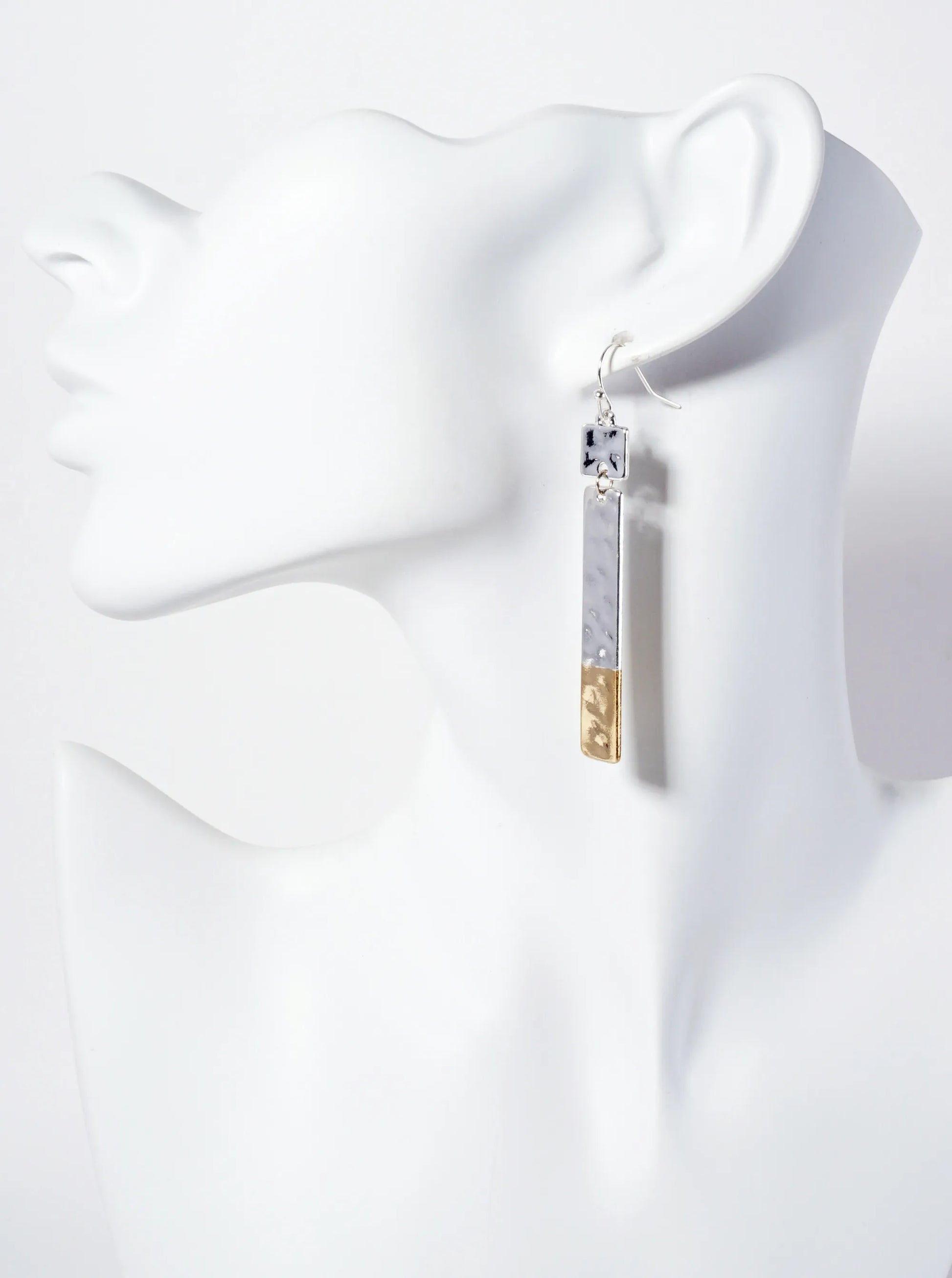 Dual-Tone Hammered-Texture Bar Drop Earrings