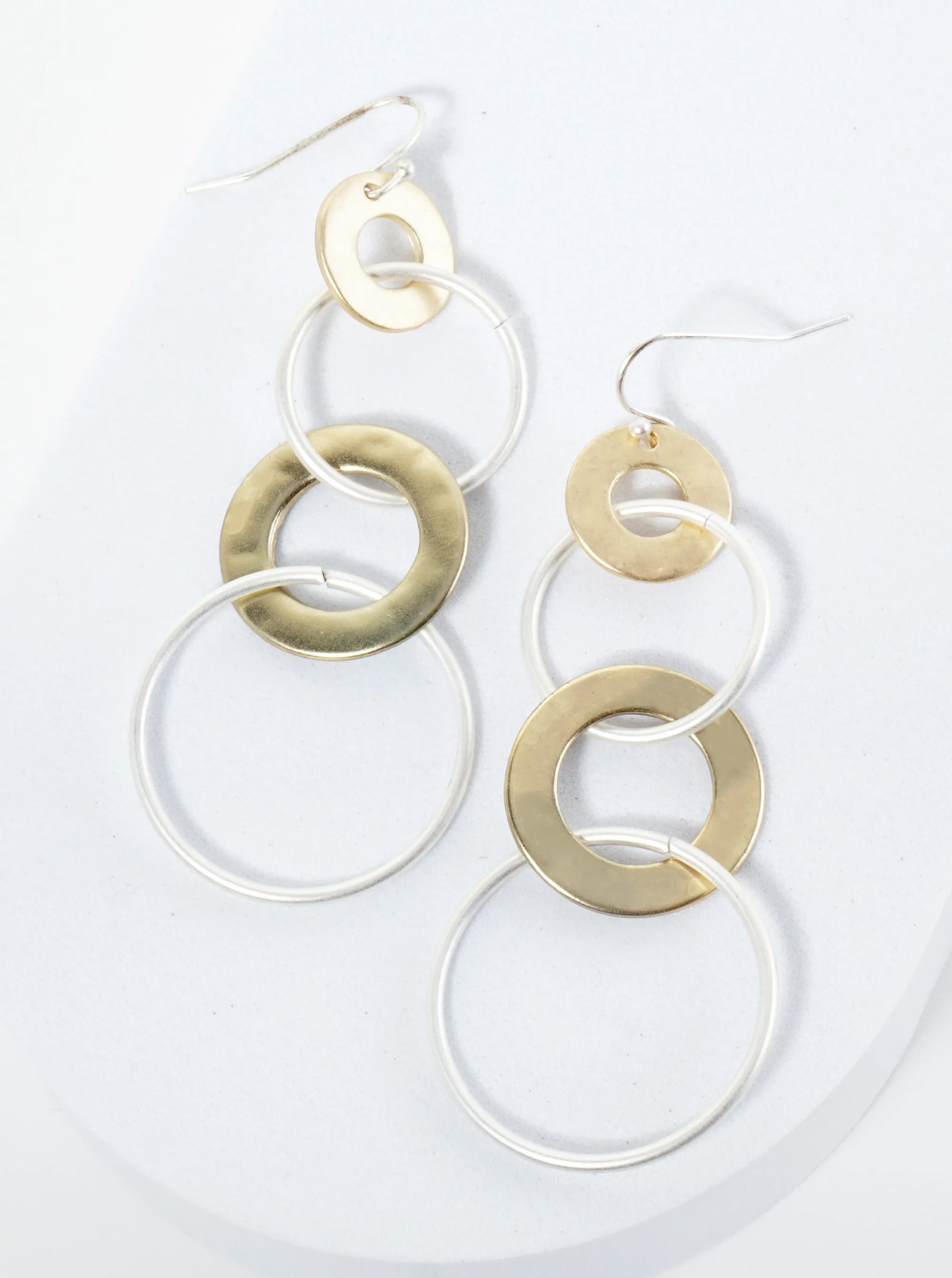 Dual-Tone Linked Multi Circle Dangle Earrings