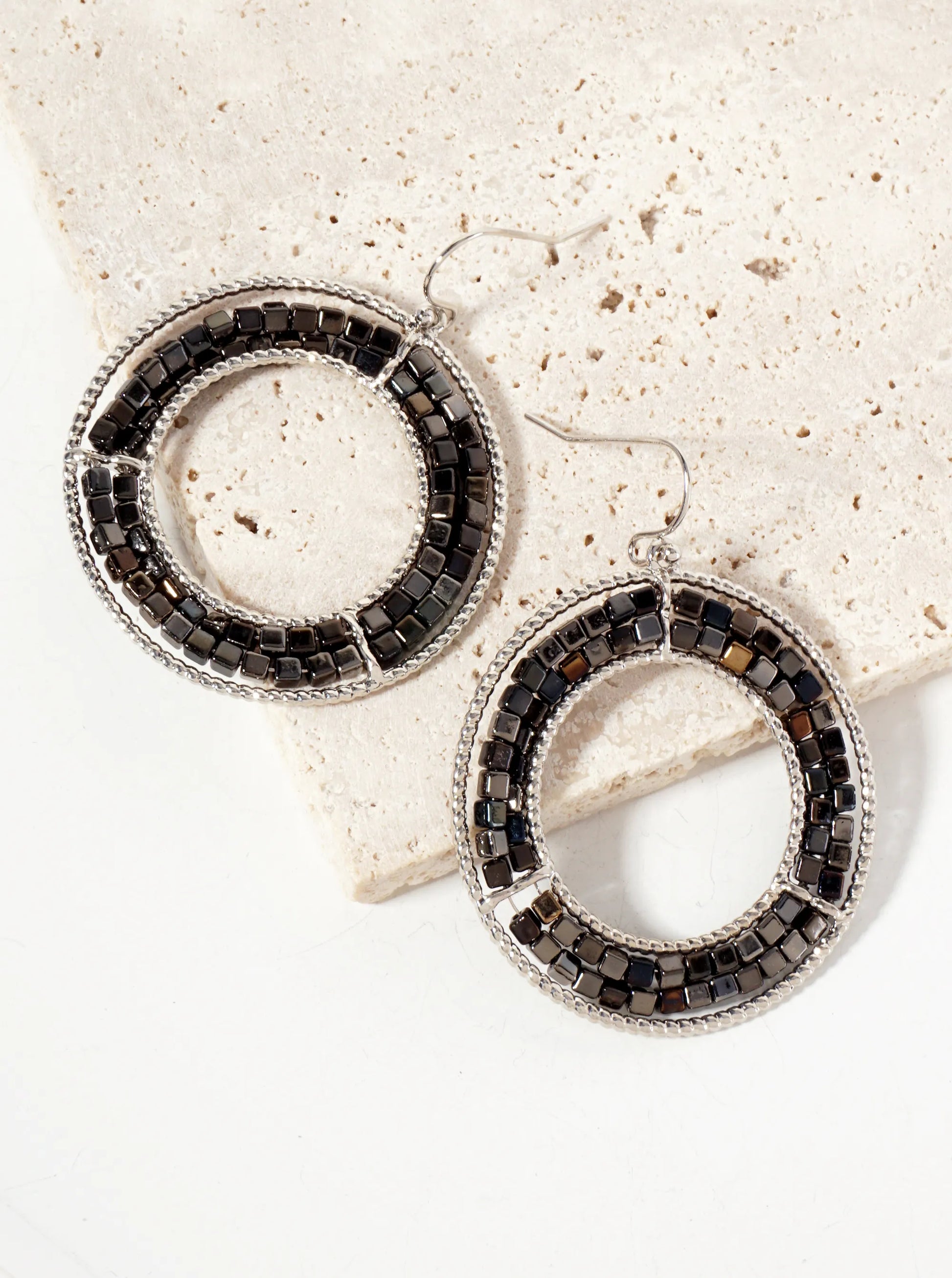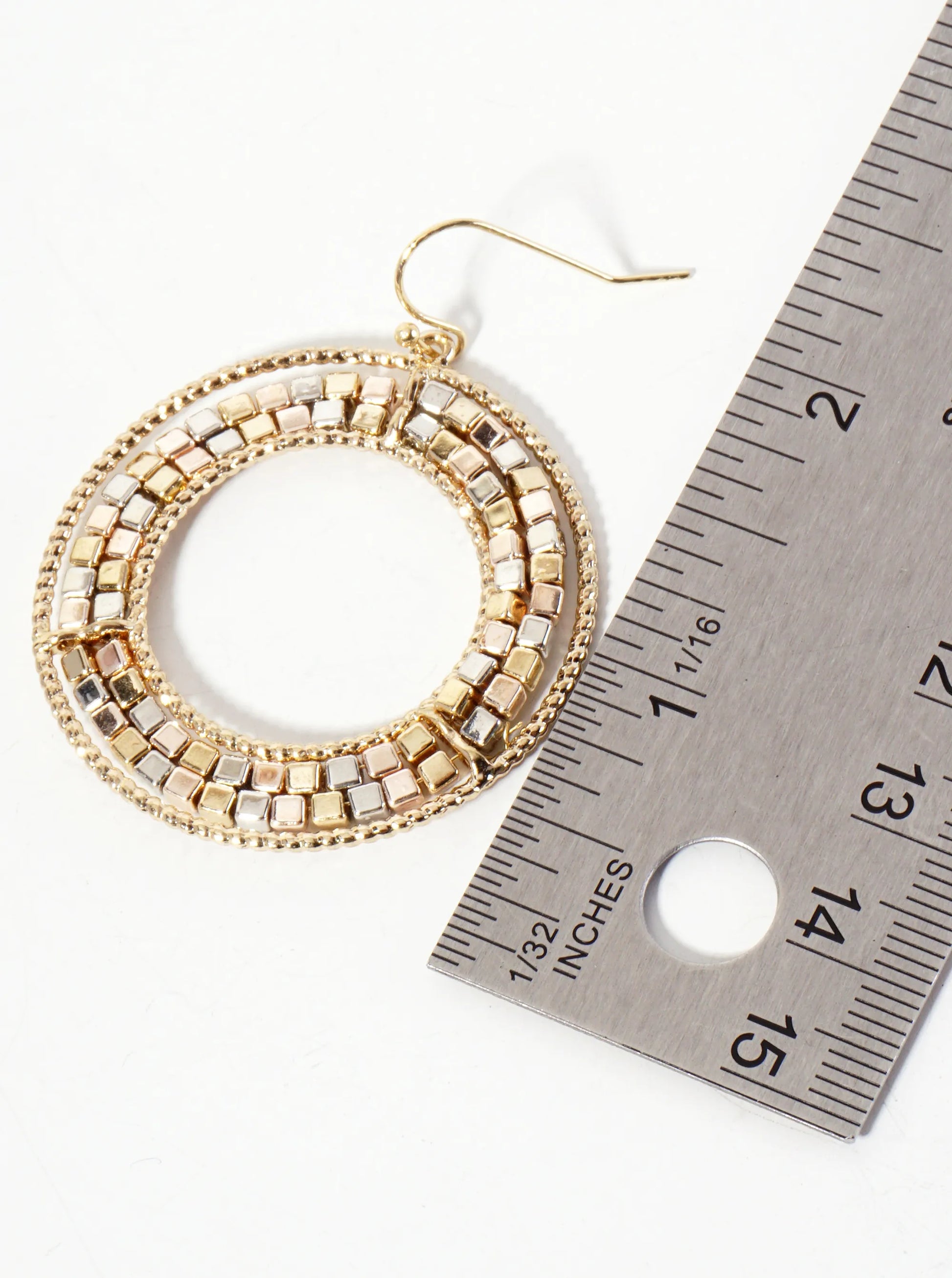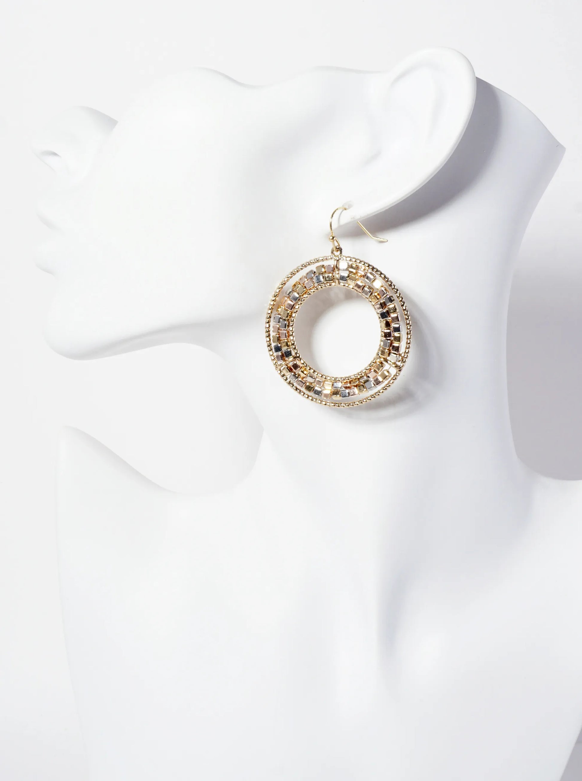 Dual-Tone Metallic-Beaded Circle Drop Earrings