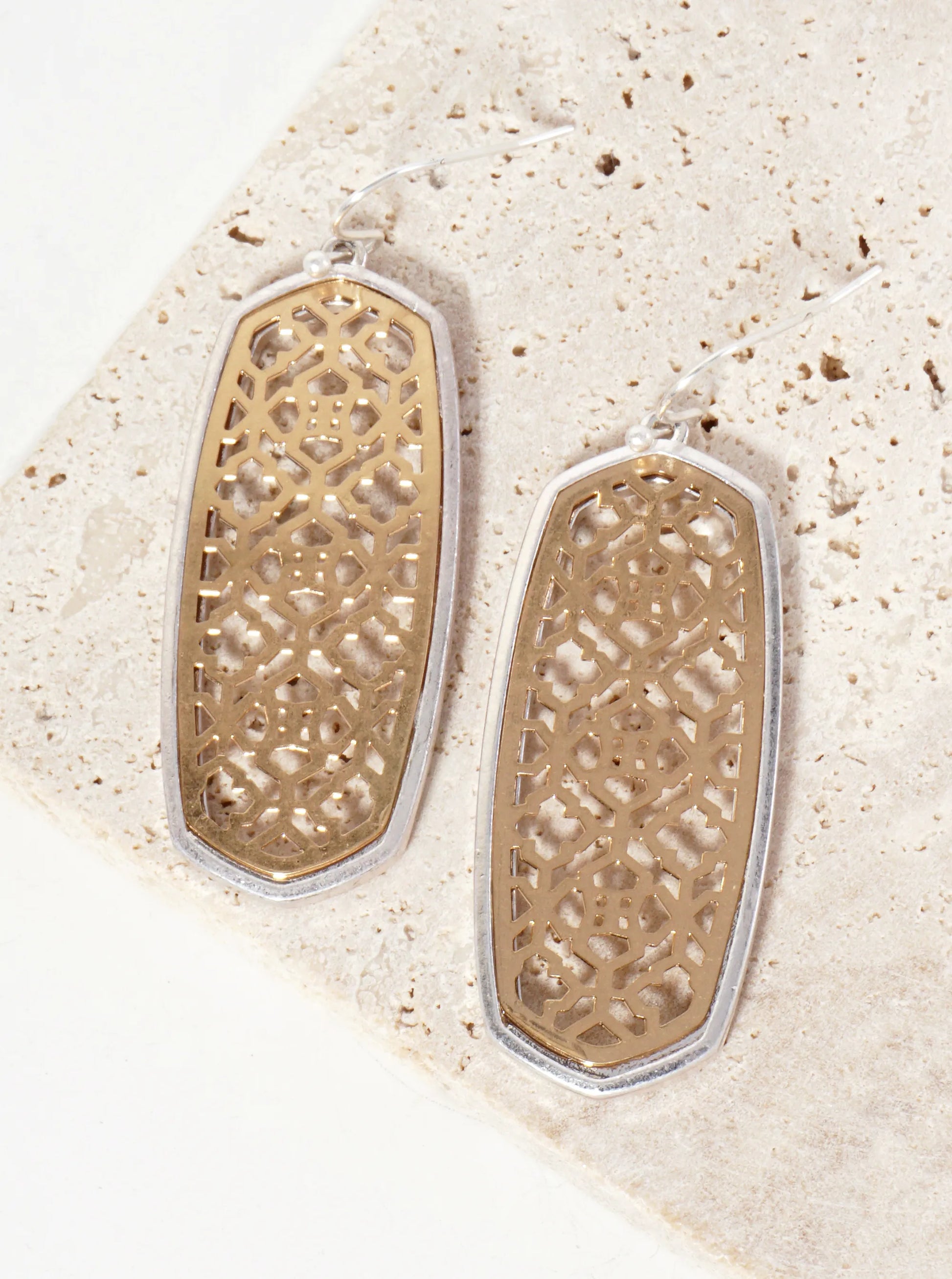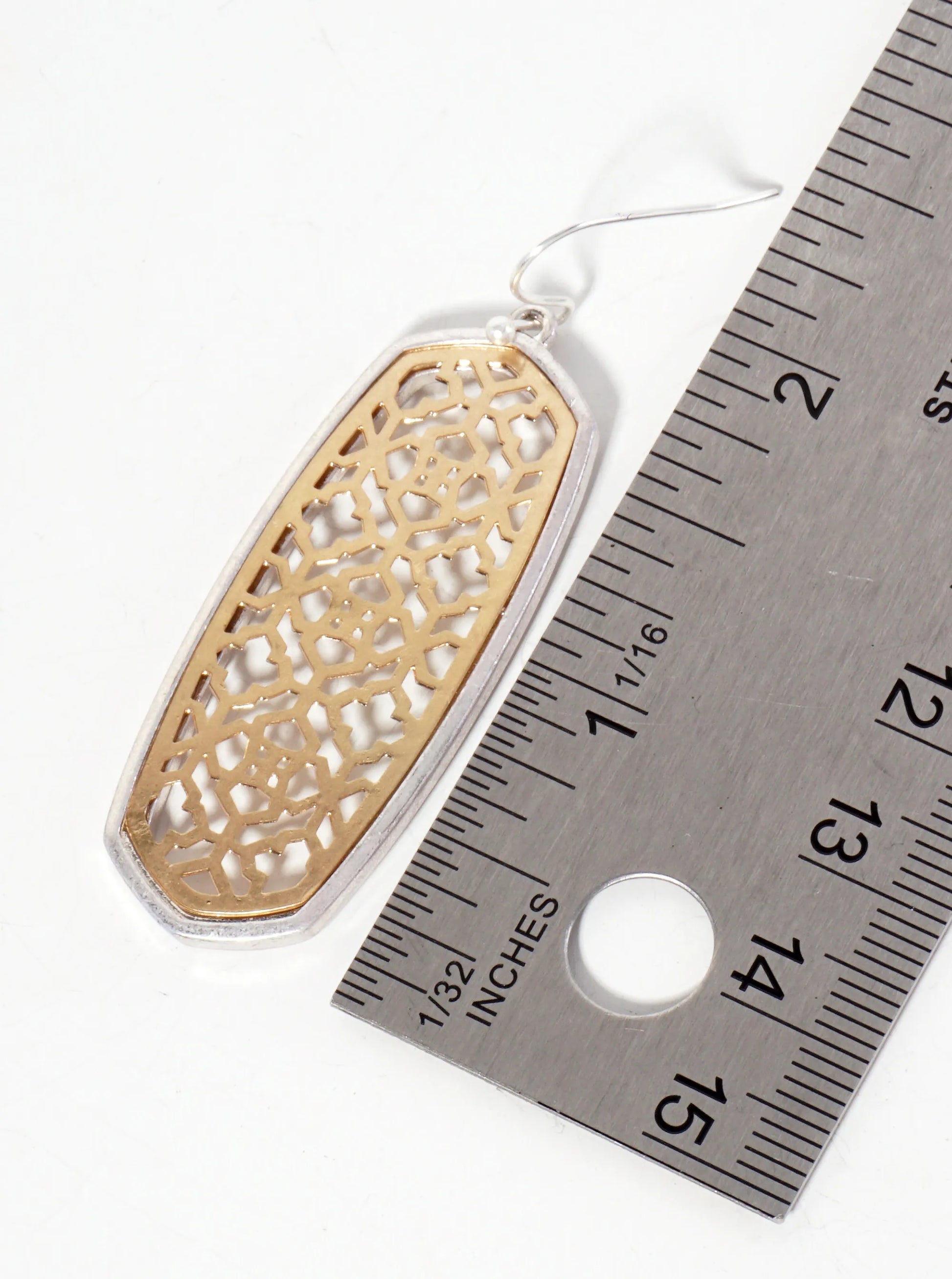Dual-Tone Quatrefoil Filigree Hexagon Drop Dangle Earrings
