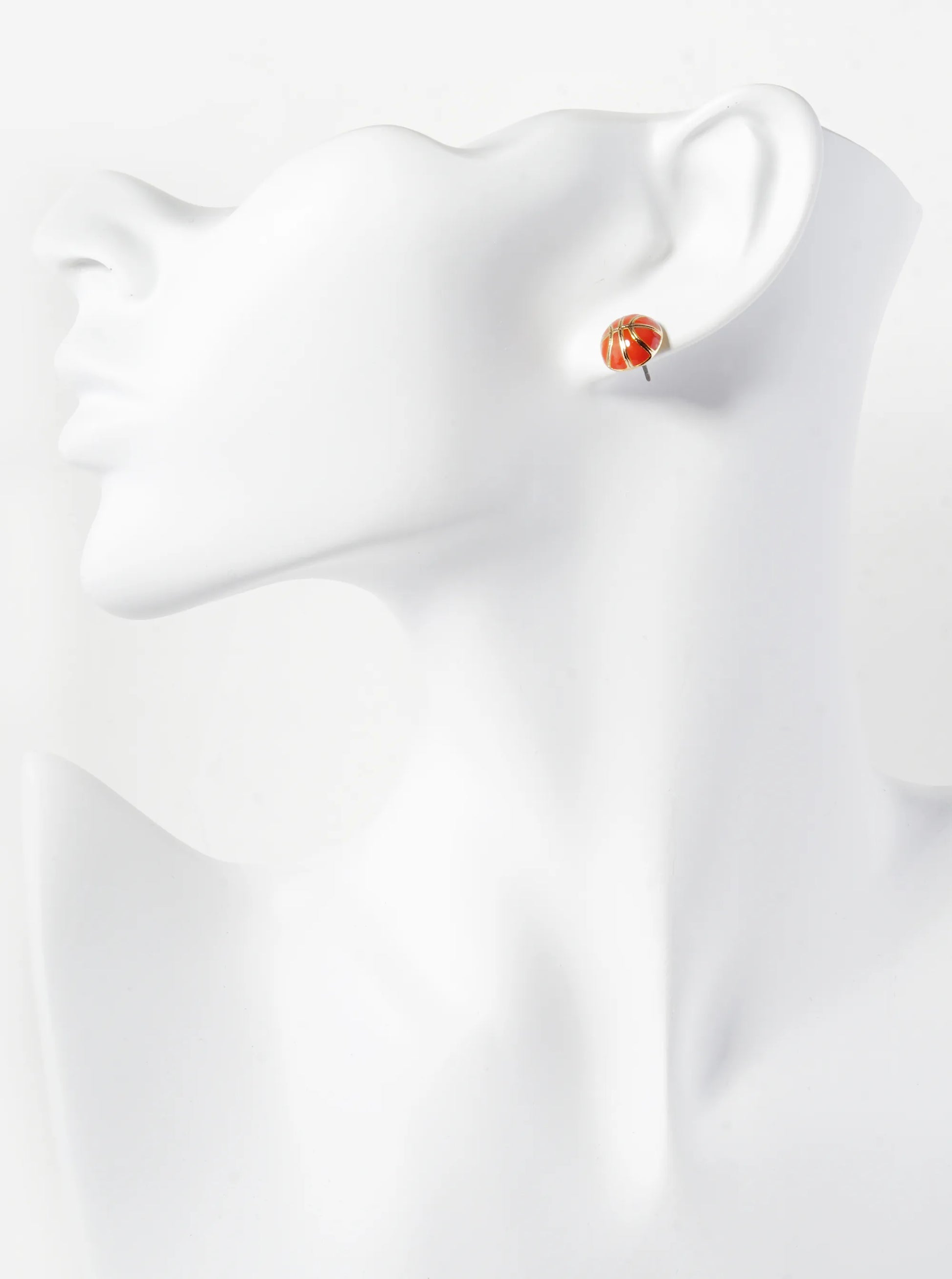 These Earrings Feature A Half-circle Design Reminiscent Of A Basketball, With Enamel Filling In The Grooves To Create A Vibrant And Eye-catching Look. Measuring 10mm In Diameter, They Are Small Studs Suitable For Everyday Wear. The Basketball-inspired Design Adds A Playful And Unique Touch To Any Outfit, Making Them Perfect For Sports Enthusiasts Or Anyone Looking To Add A Fun Element To Their Jewelry Collection. Overall, These Earrings Offer A Trendy And Sporty Accessory Option With A Pop Of Color.