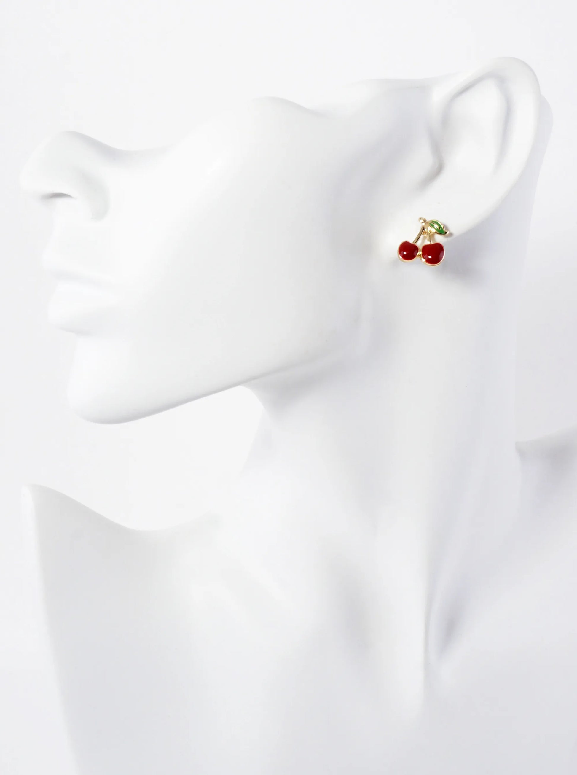Enamel Filled Half-inch Cherry 18K-Gold-Dipped Brass Stud Earrings