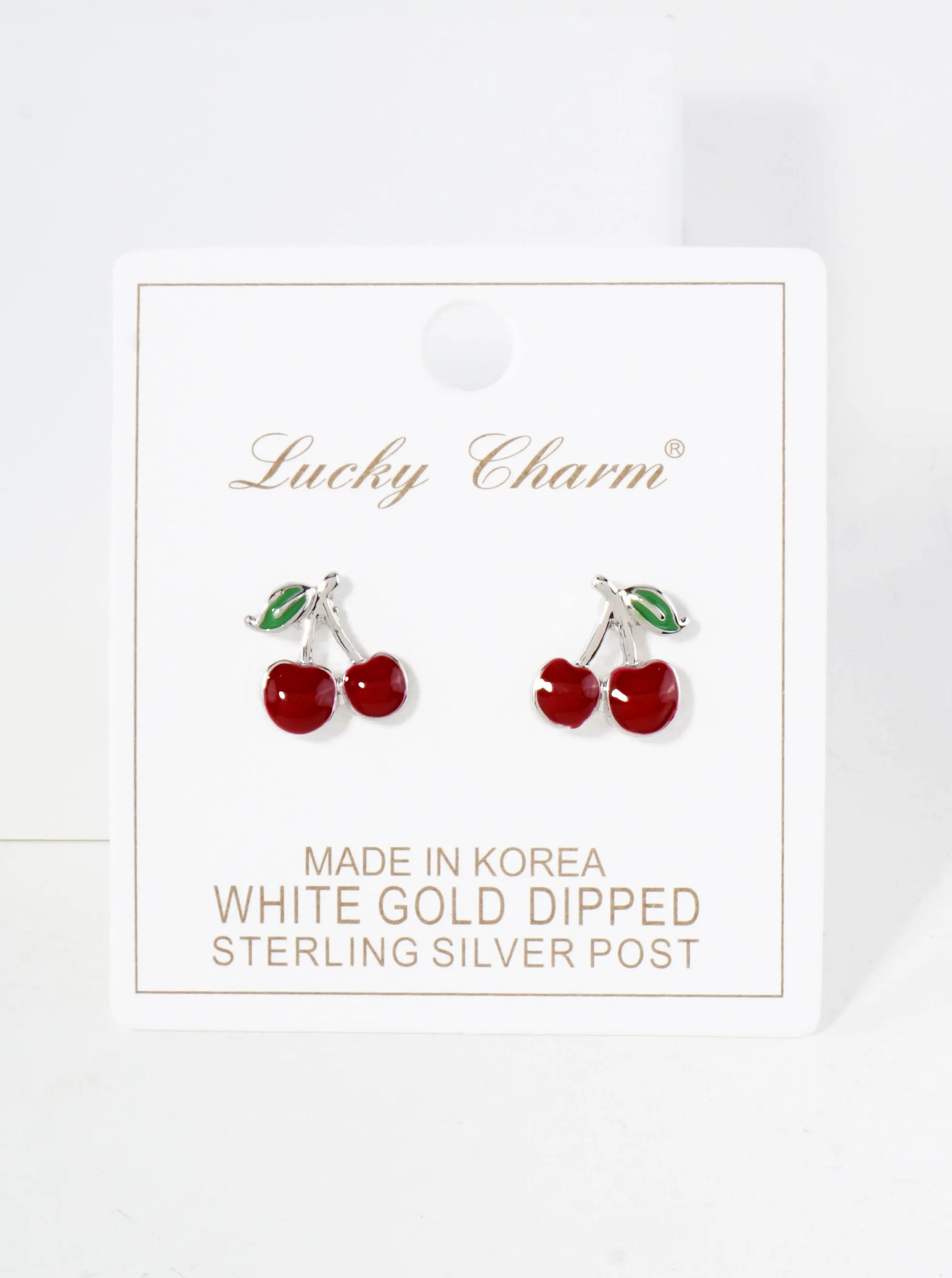Sweet With A Hint Of Retro Charm, These Half-inch Cherry Stud Earrings Are A Playful Addition To Any Collection. Made From Durable Brass And Dipped In 18K Gold, Each Pair Features Glossy Red Enamel Cherries And Green Leaf Accents, Giving Them A Fun, Fruity Pop Of Color.