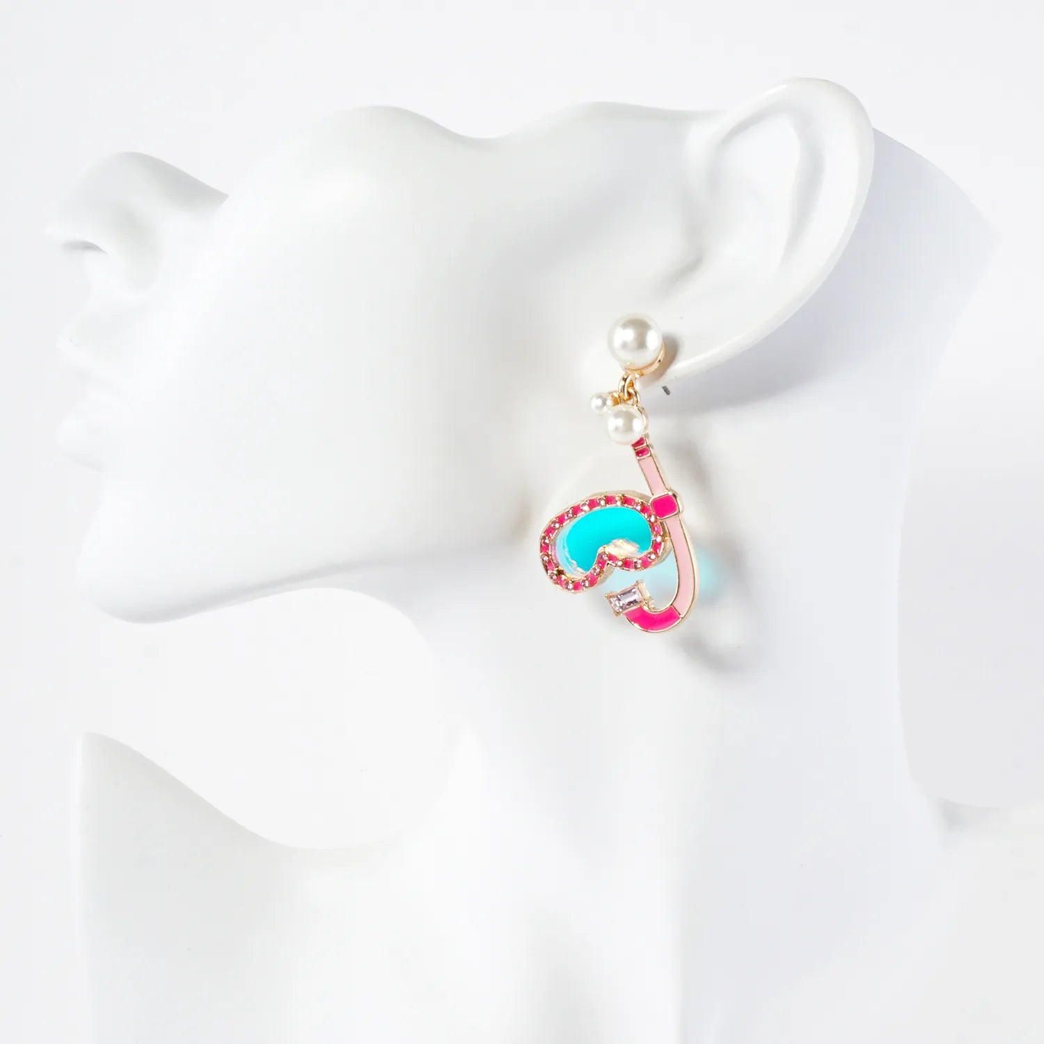 Enamel Snorkeling Gear Drop Dangle Earrings