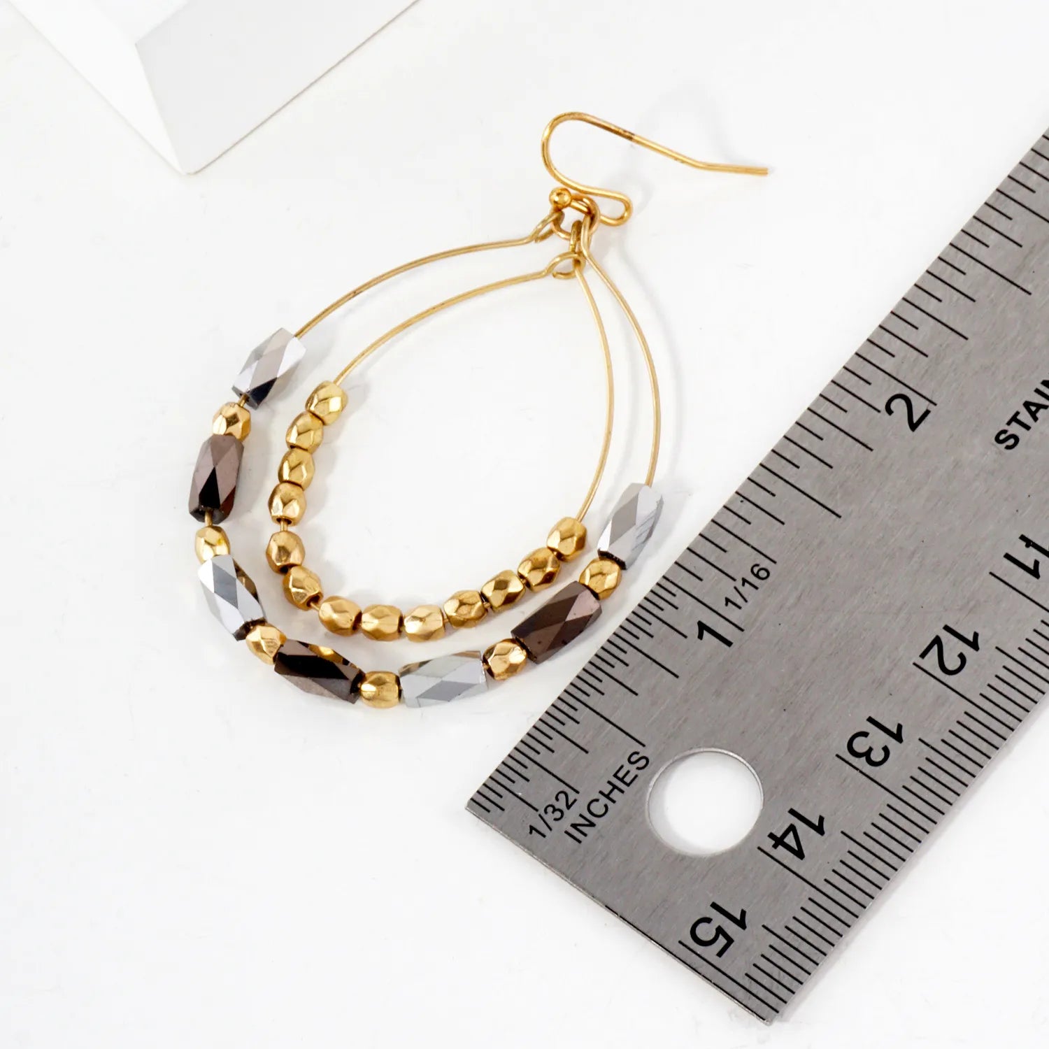Faceted Beaded Layered Double Teardrop Dangle Earrings