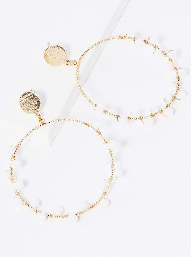 Faceted Glass Bead Wire Wrapped Circle Dangle Drop Earrings