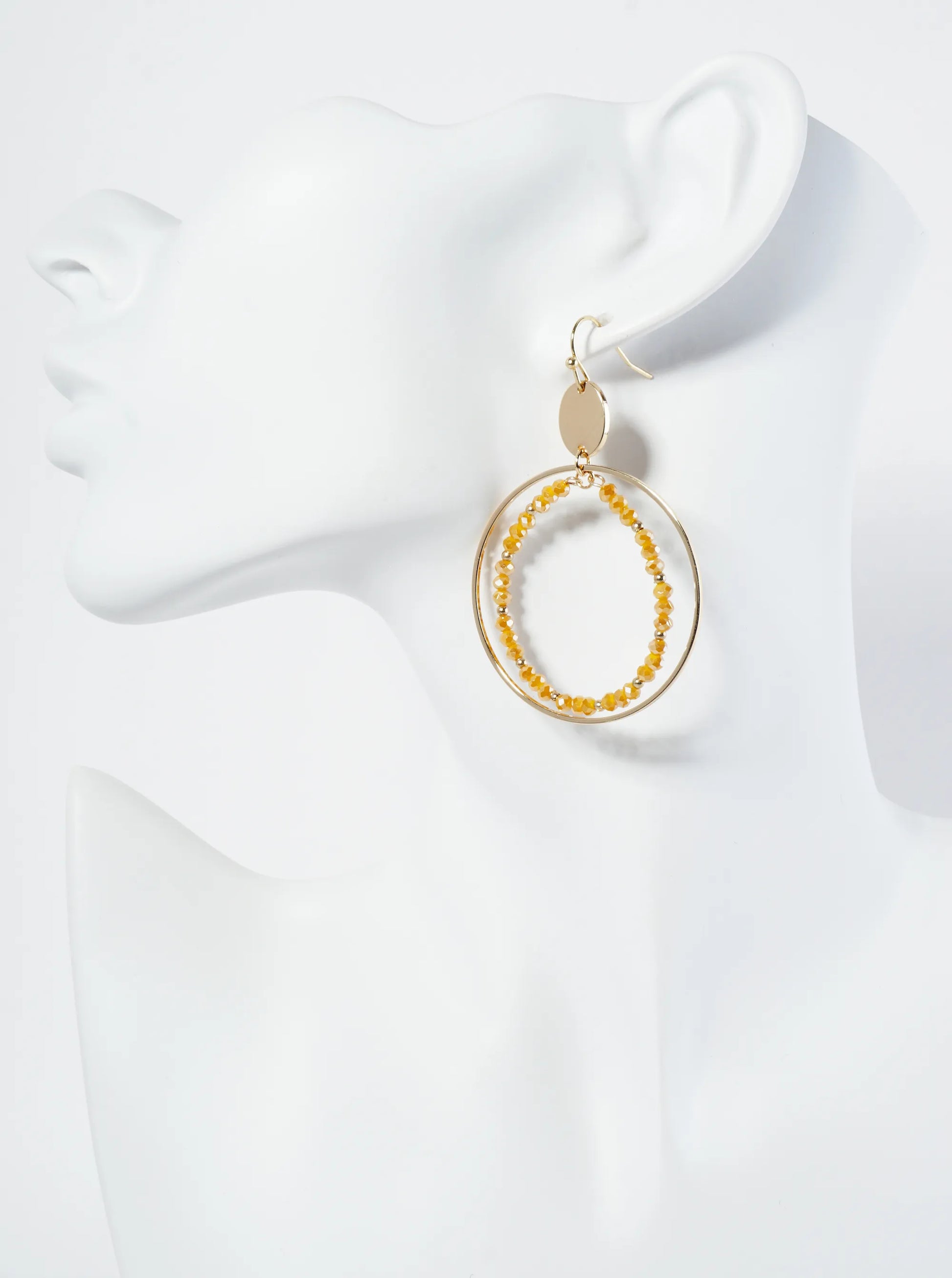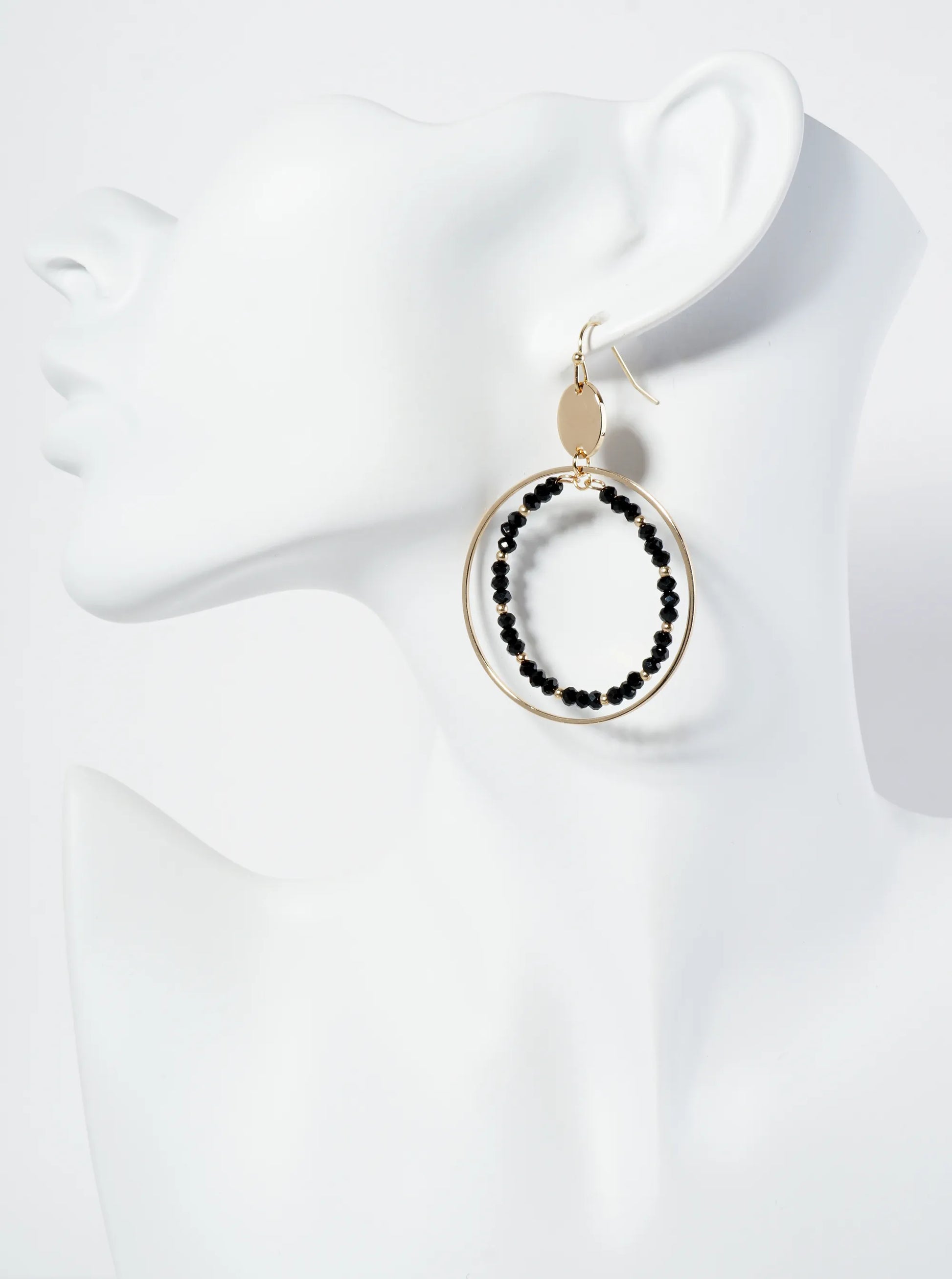 Faceted Glass Beaded Double Wire Circle Dangle Earrings