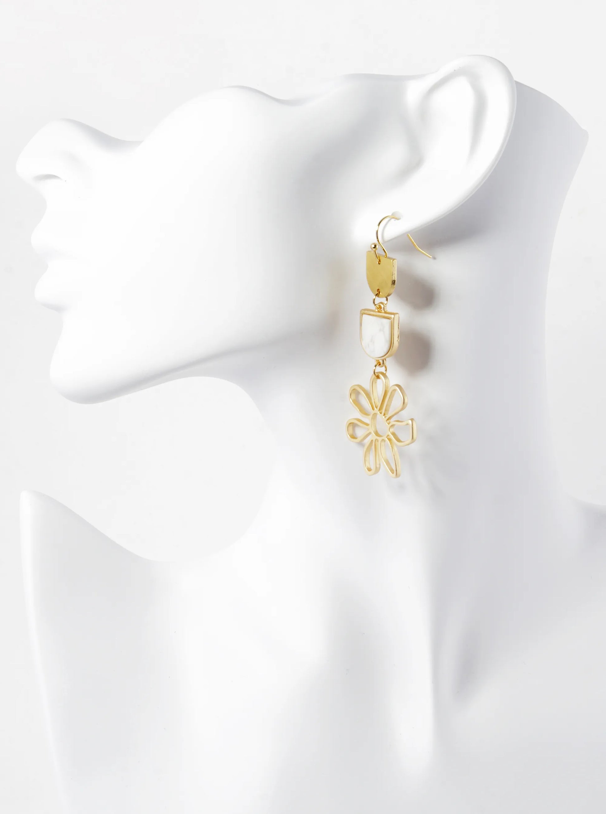 Flower Drop Semi-Precious Stone Dangle Drop Earrings