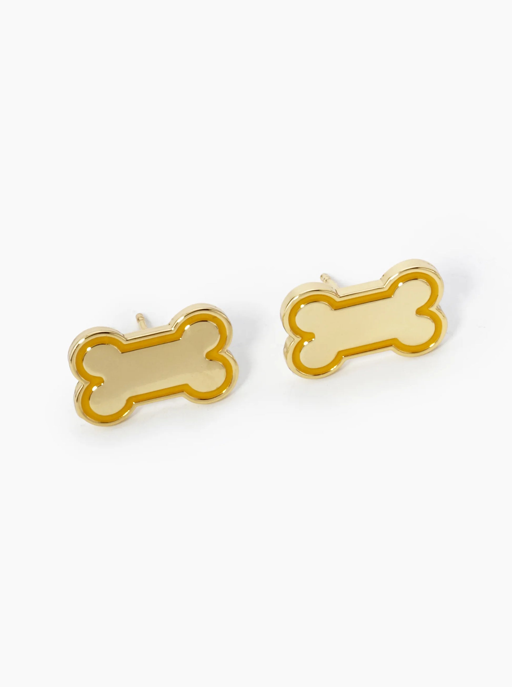 Game Day Mascot 18K Gold Dipped 9mm Enamel Dog Bone Treat Stud Earrings