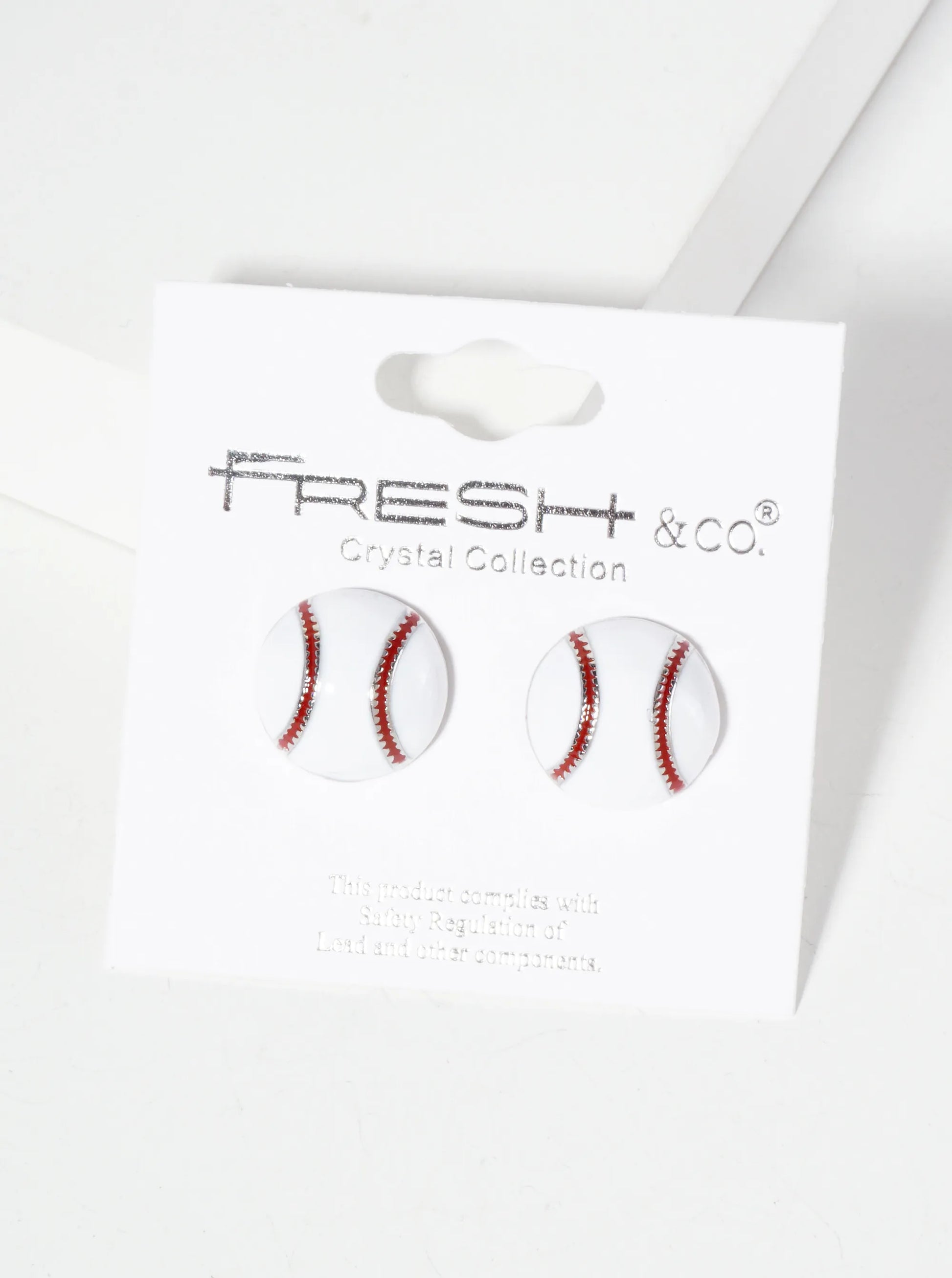 Game-Day-Theme 13mm Enamel Baseball Button Stud Earrings