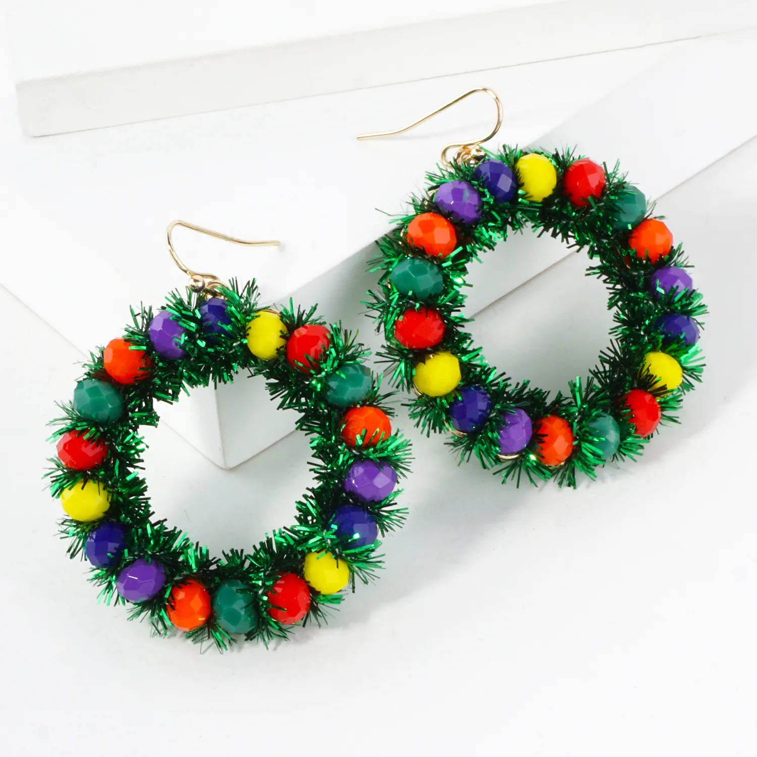 Bring A Festive Sparkle To Your Holiday Collection With These Glass Beaded Christmas Wreath Dangle Earrings. Designed With Shimmering Glass Beads Arranged In A Classic Wreath Silhouette, These Lightweight Dangles Offer Movement, Shine, And Seasonal Charm Your Customers Will Love. The Perfect Mix Of Elegance And Whimsy, These Earrings Are Ideal For Holiday Parties, Stocking Stuffers, Or Festive Retail Displays.