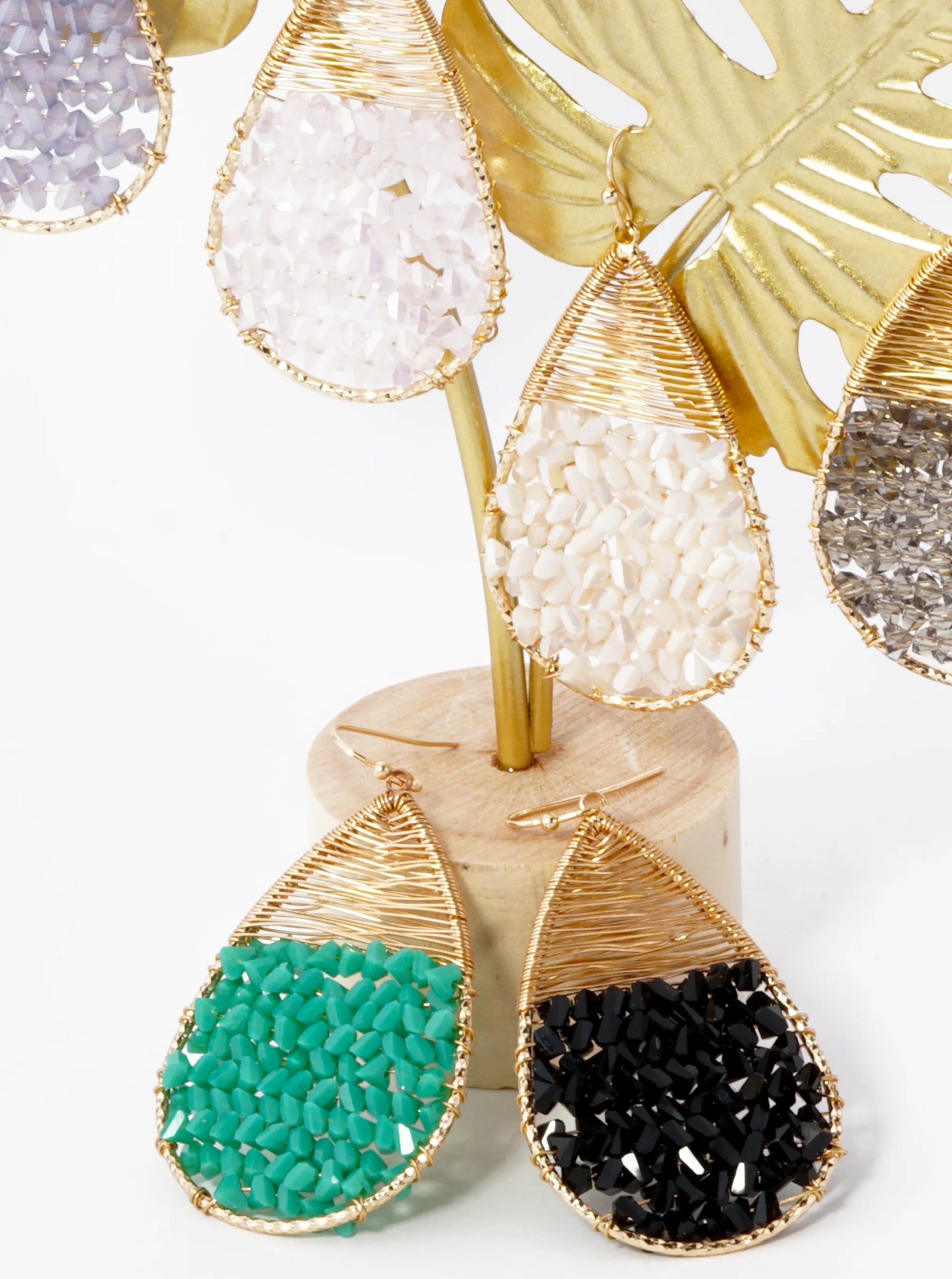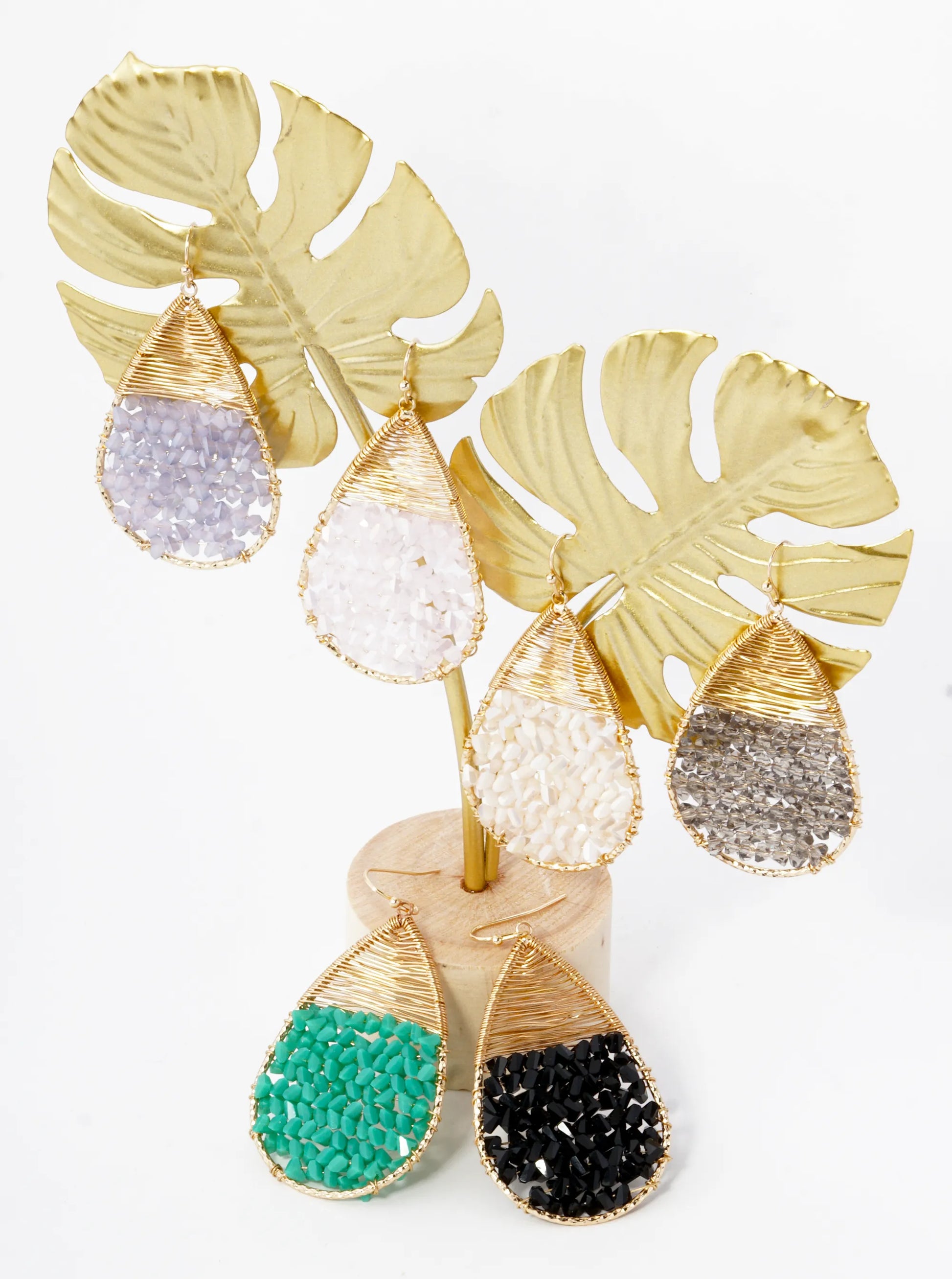 Glass Beads Wire Wrapped Teardrop Dangle Earrings