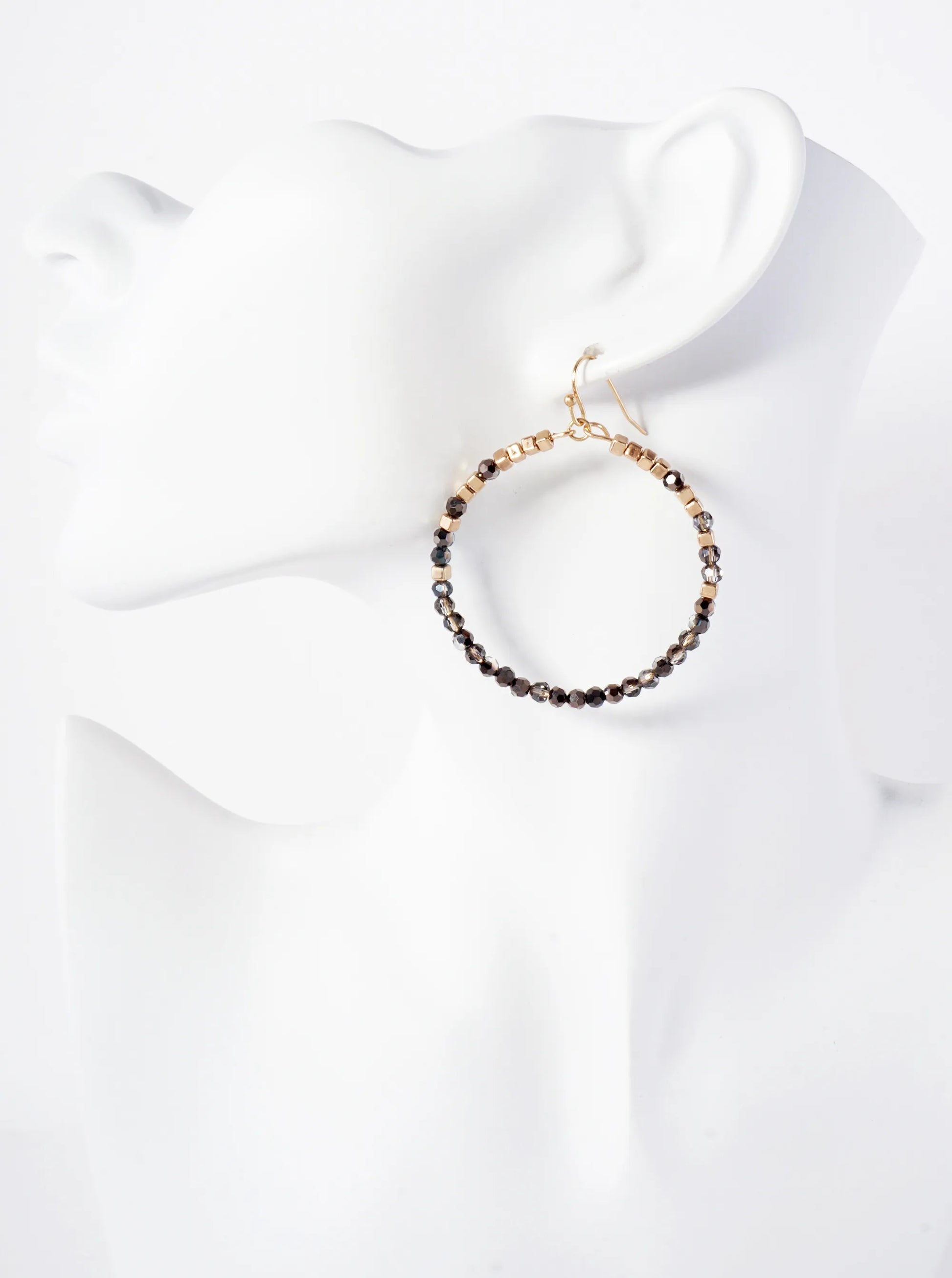 Glass Metal Beads Wrapped Round Circle Drop Earrings