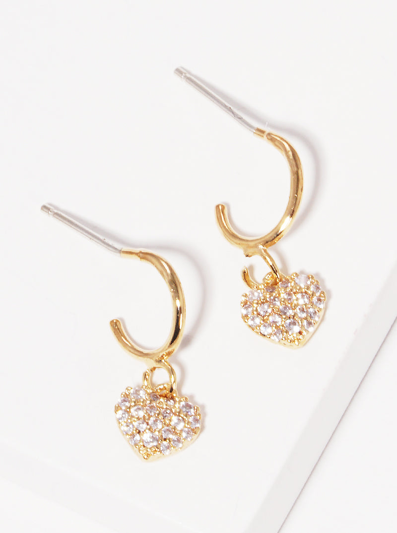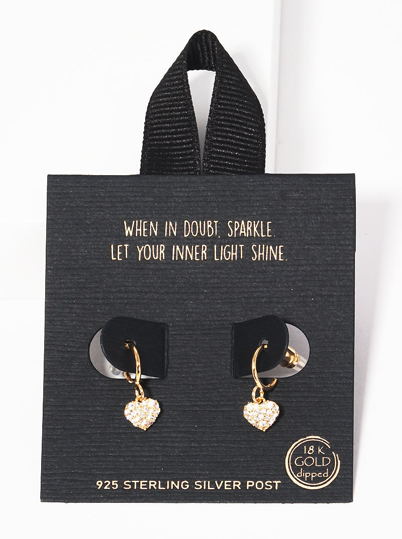 Gold Dipped Cz Heart Dangle Earrings