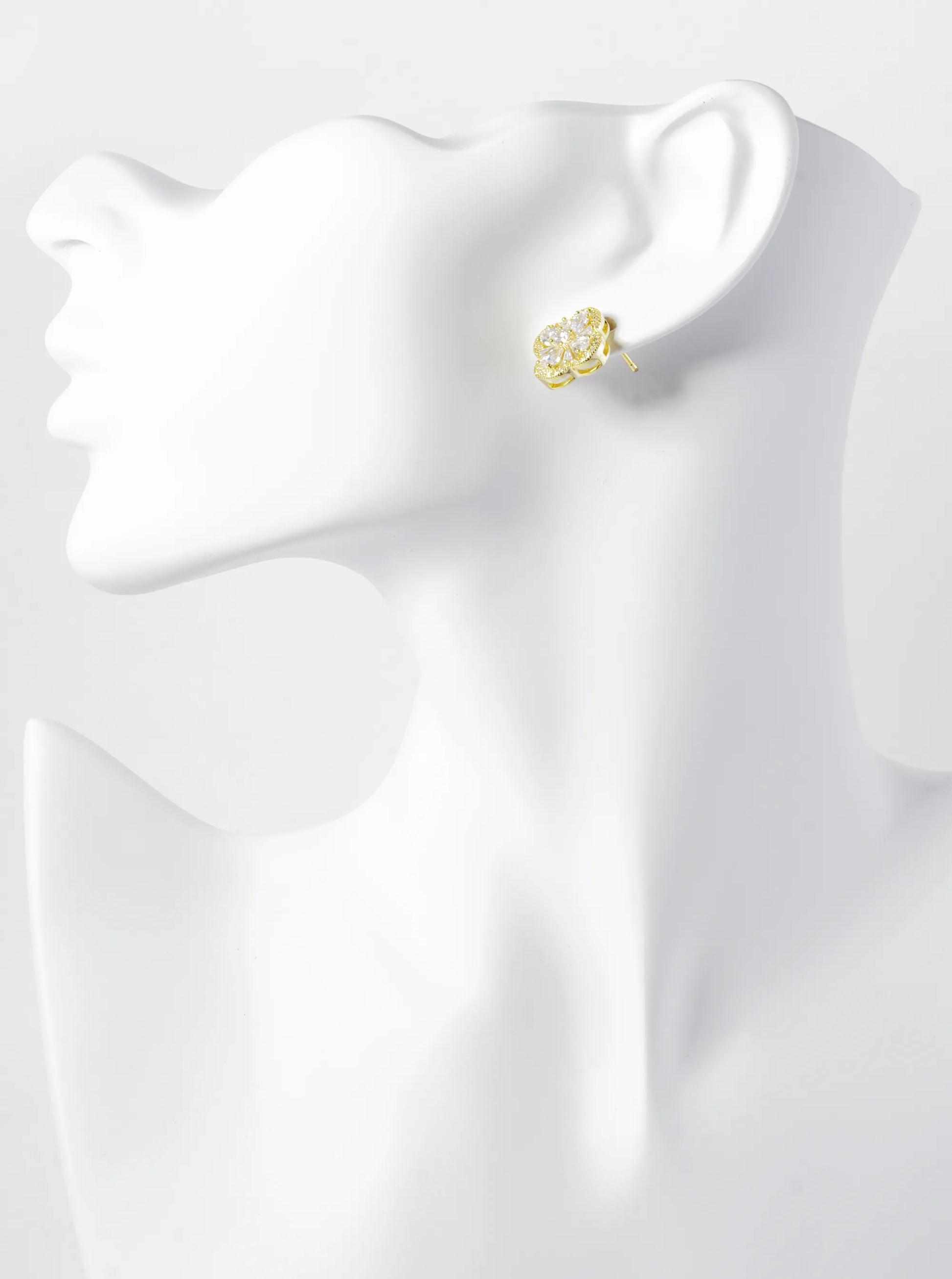 Gold Dipped Pave Baguette Cubic Zirconia 15mm Quatrefoil Stud Earrings