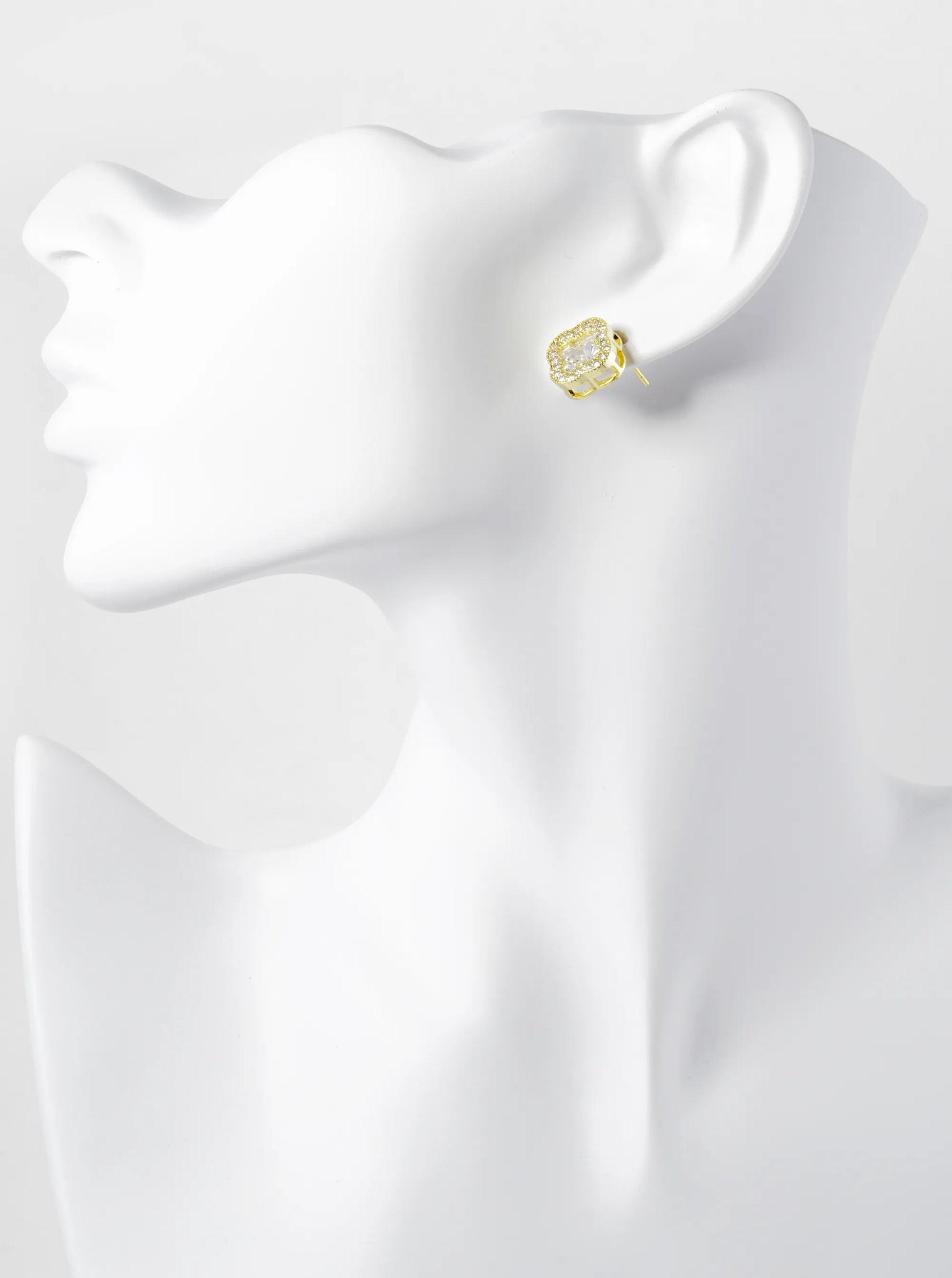 Gold Dipped Pave Set Cubic Zirconia 13mm Quatrefoil Stud Earrings