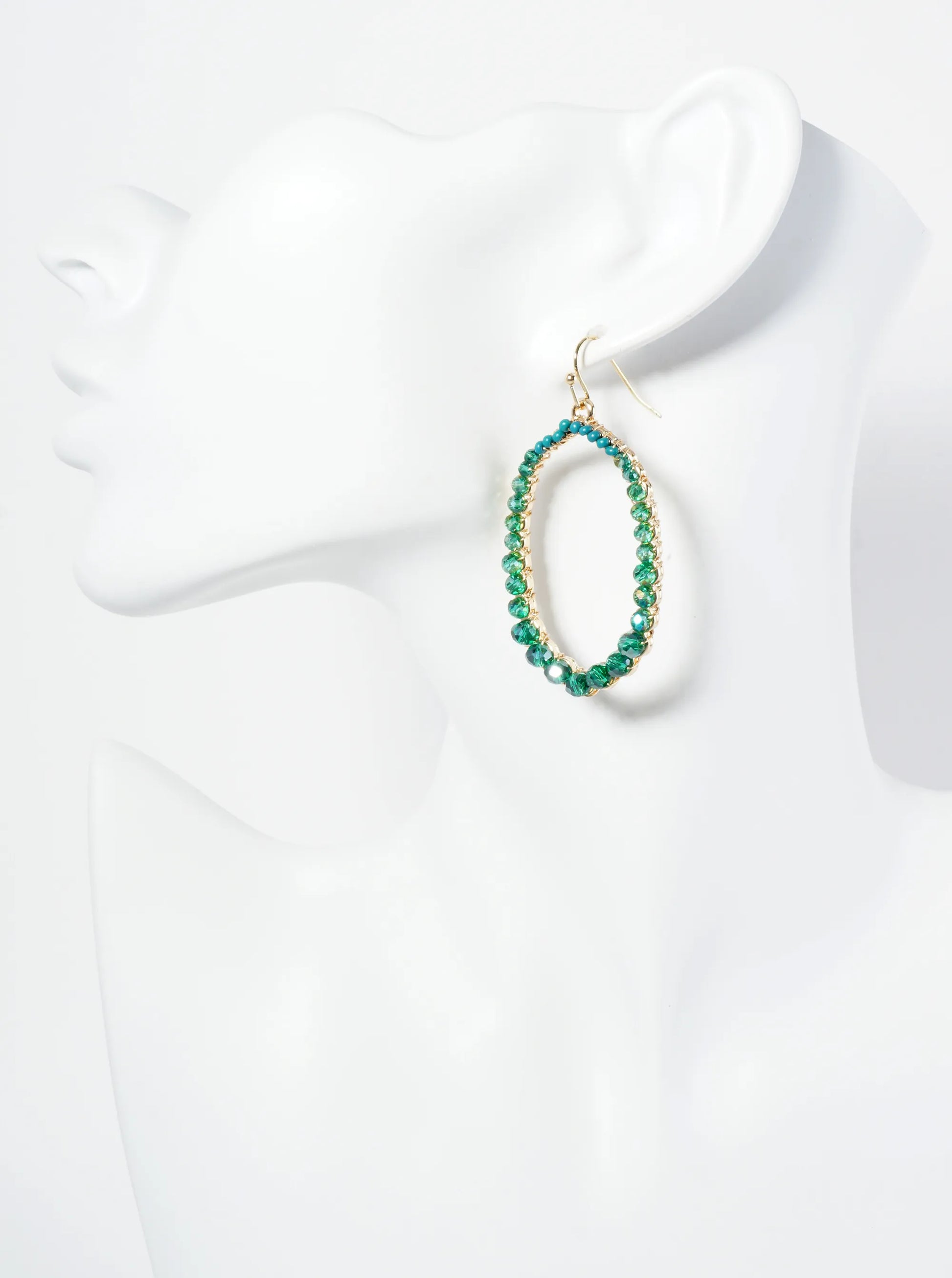 Graduated Glass Beaded Long Hexagon Dangle Drop Earrings