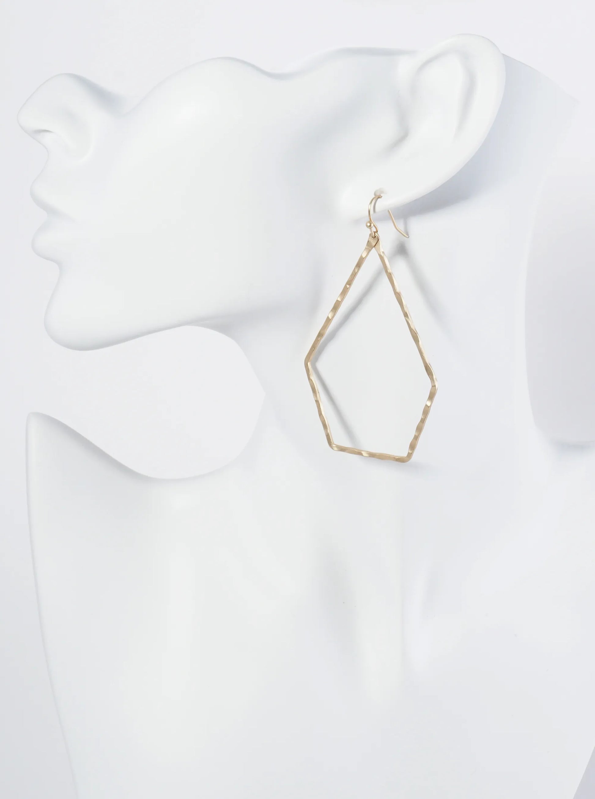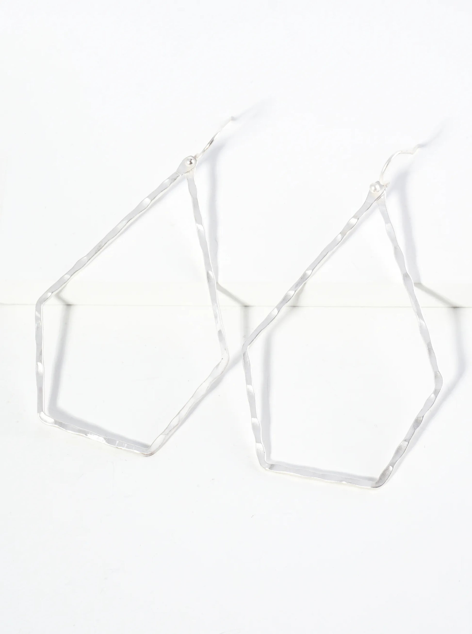 These Chic Earrings Feature A Unique Pentagon Shape And A Hammered Metal Finish, Adding A Touch Of Edgy Sophistication To Any Outfit. Perfect For Both Casual And Formal Occasions, Their Lightweight Design Ensures Comfortable Wear All Day Long. Make A Bold Statement With These Striking Earrings That Effortlessly Blend Modern Elegance With Timeless Charm.