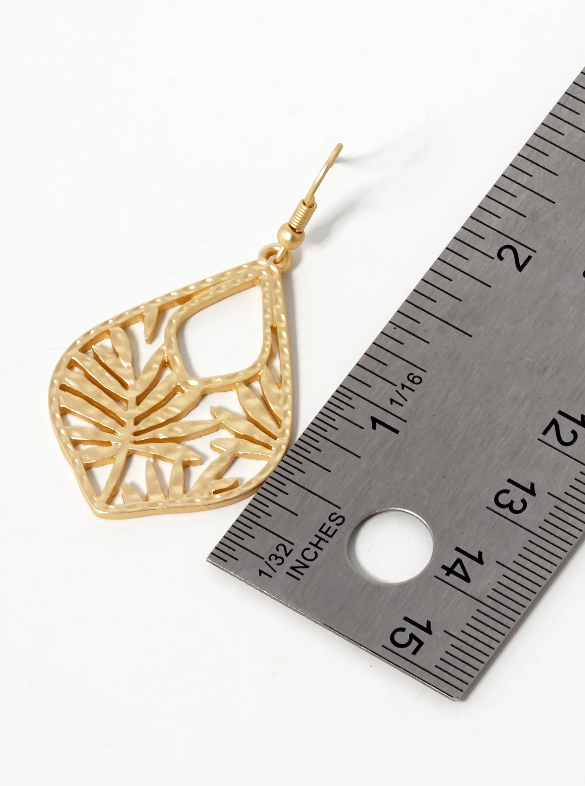 Hammered Metal Nature Inspired Filigree Dangle Drop Earrings