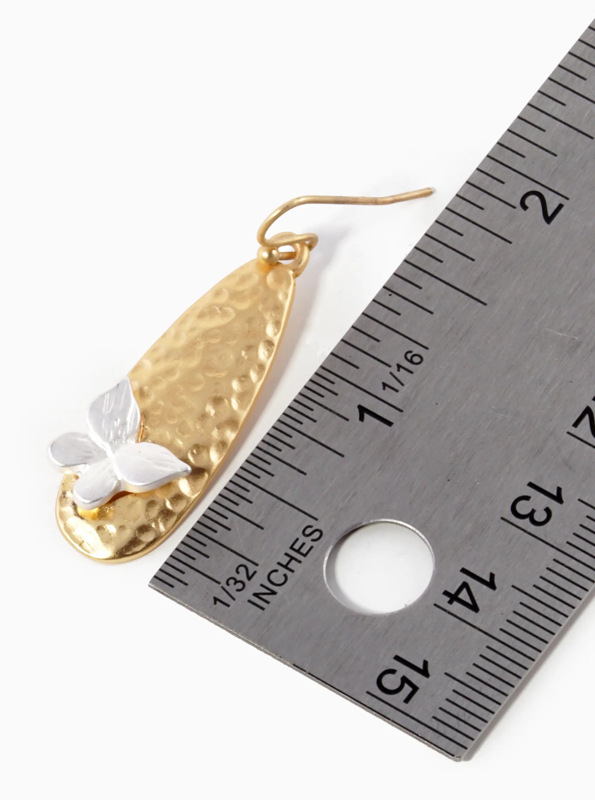 Hammered Metal Teardrop Butterfly Dangle Drop Earrings