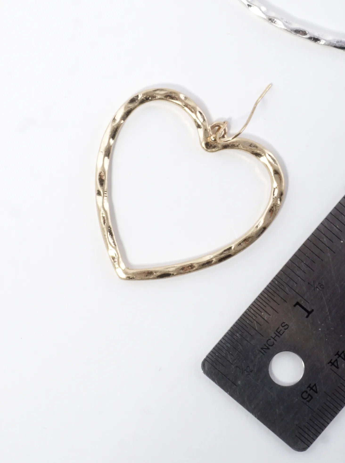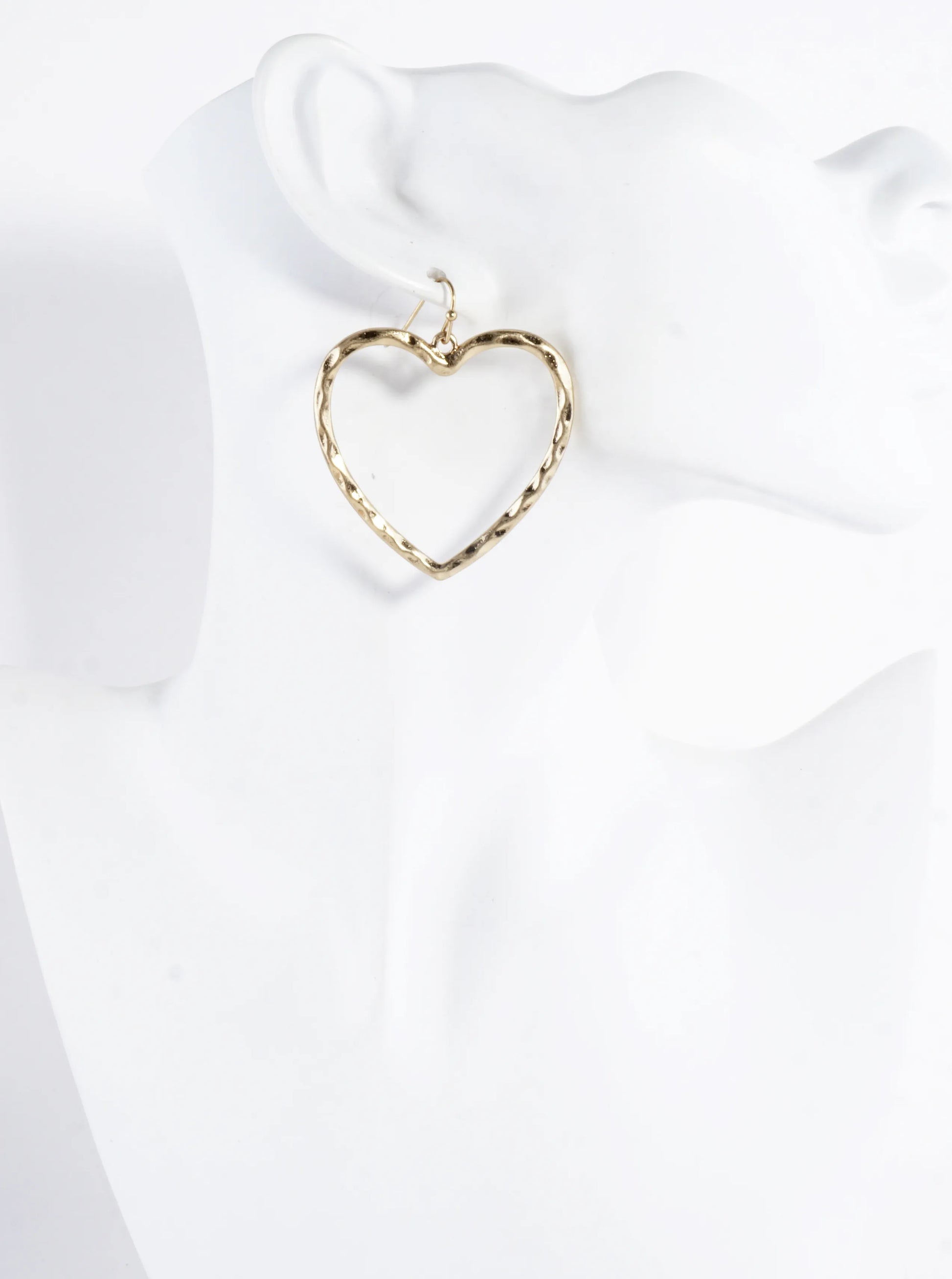 Show Off Handcrafted Charm With These Hammered-Texture Cutout Heart Dangle Earrings. Featuring An Open Heart Silhouette With A Hammered Metal Finish, These Earrings Offer A Perfect Mix Of Romance And Rustic Appeal. The Cutout Design Adds Airy Lightness, While The Textured Surface Gives Them An Artisan Feel That Catches The Light Beautifully.
