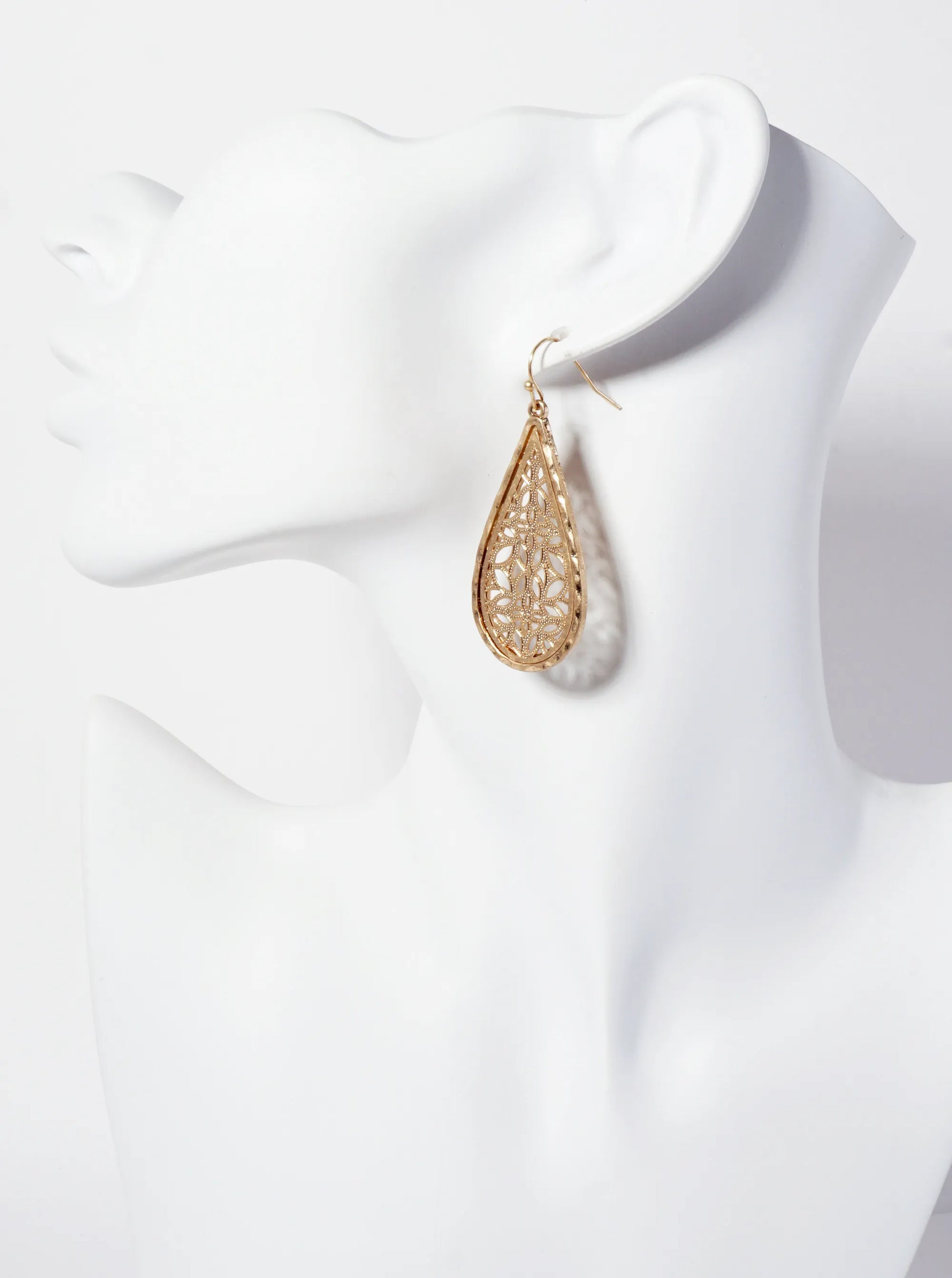 Hammered-Texture Filigree Teardrop Dangle Earrings