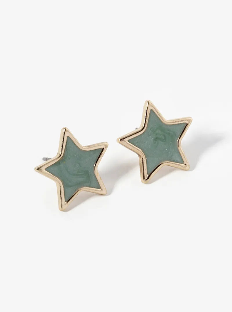 Marble Enamel Filled Dainty Star Stud Earrings
