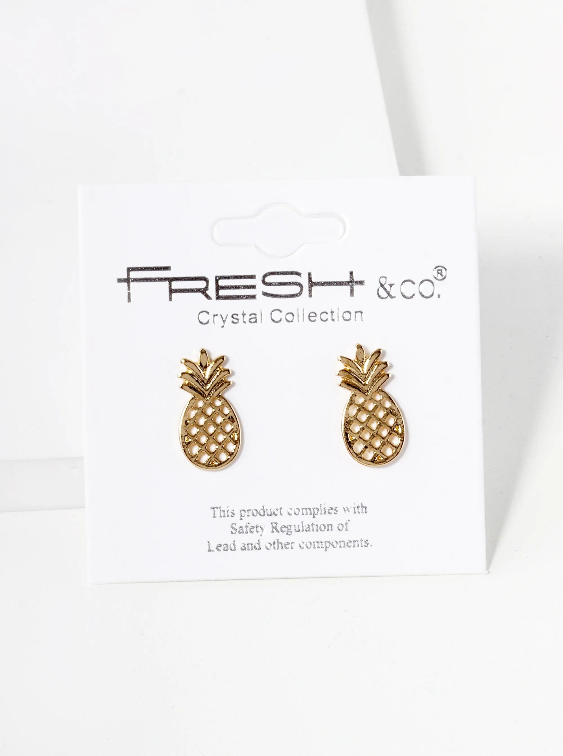 Metal 15mm Filigree Pineapple Tropical Stud Earrings