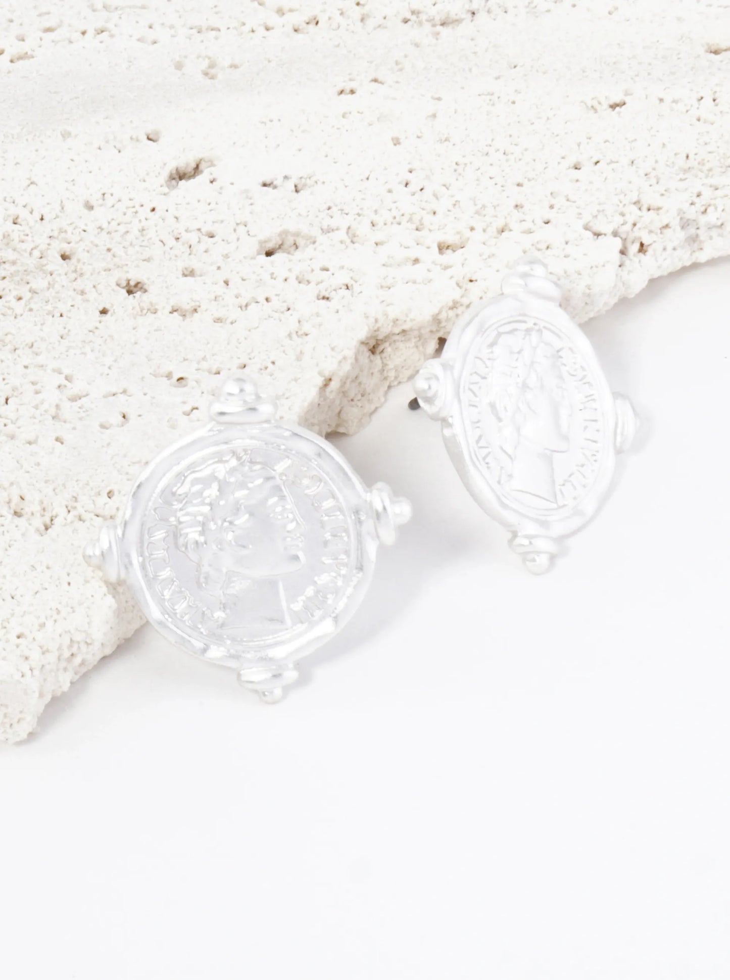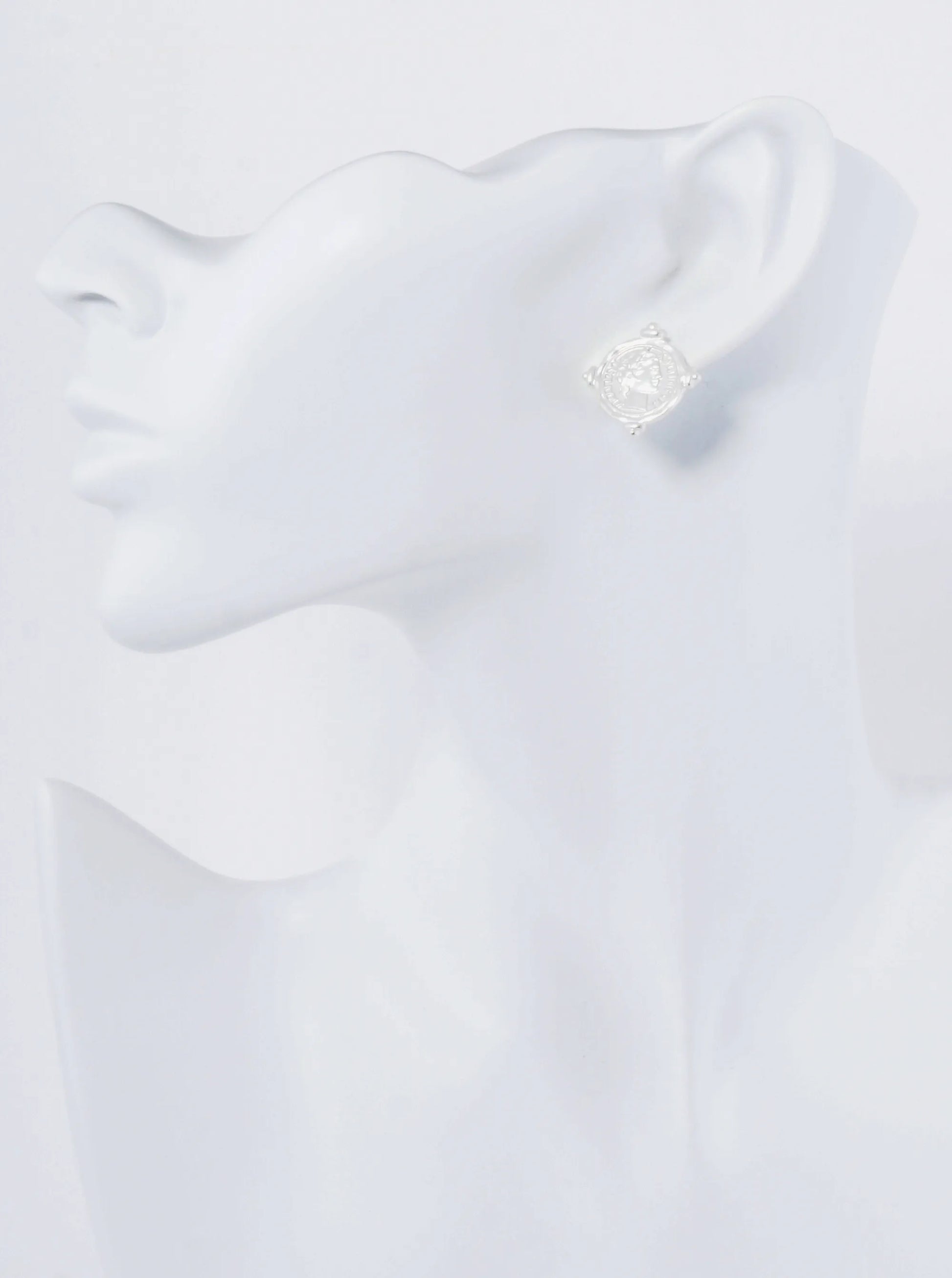 Crafted With Meticulous Attention To Detail, Each Stud Earring Showcases A Small Metal Coin As Its Centerpiece. The Coins Are Intricately Embossed With Intricate Patterns Or Designs, Adding Depth And Texture To The Overall Aesthetic.
