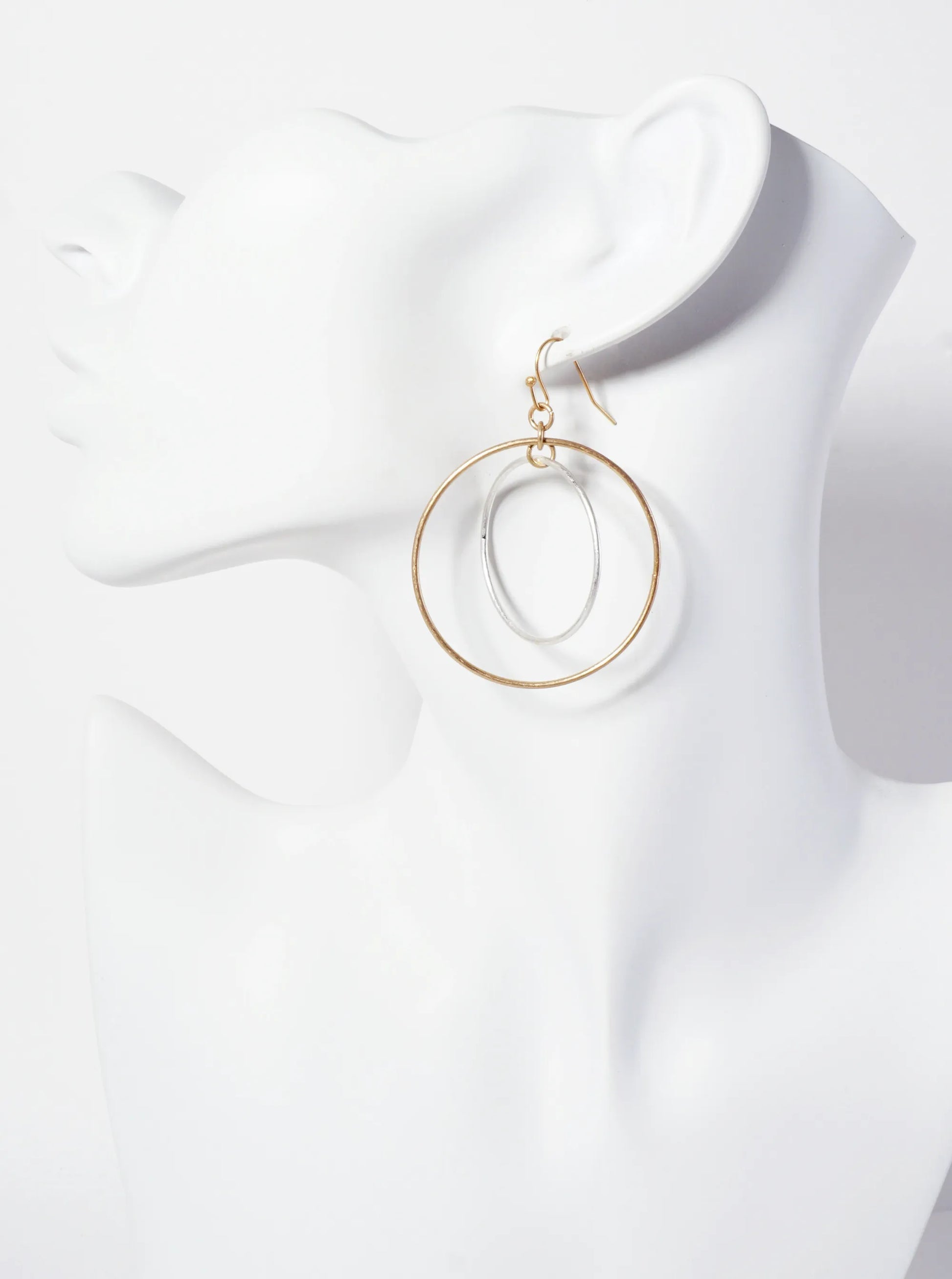 Metal Double Circle Dangle Drop Earrings