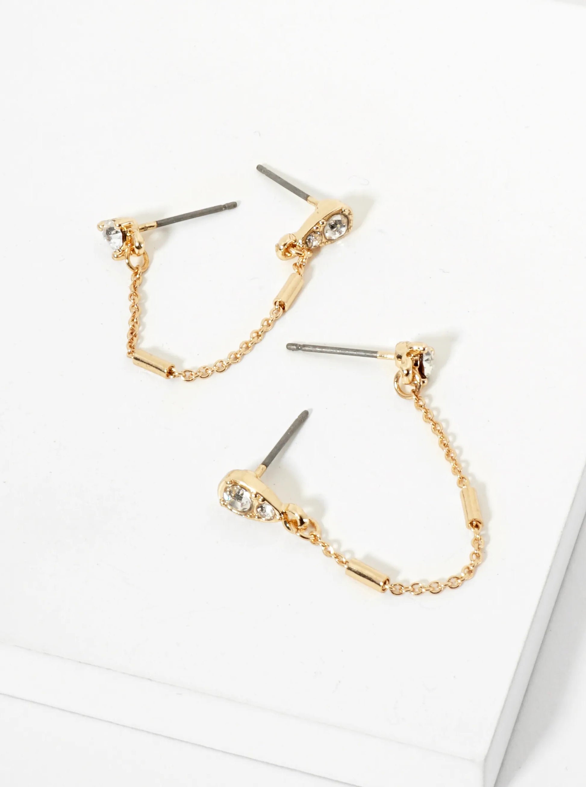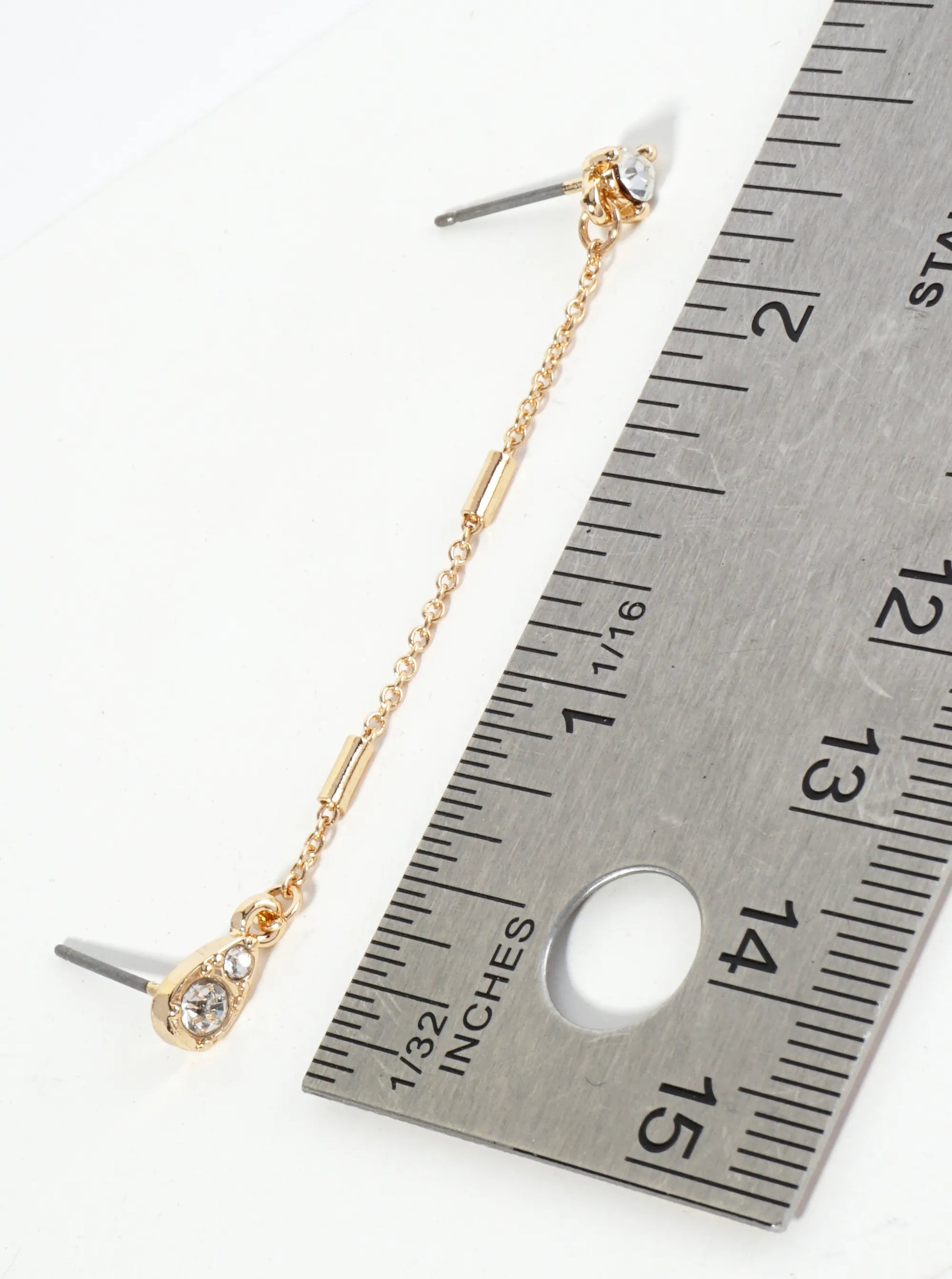 Metal Double Piercing 2 Inch Link Bar Chain Stud Earrings