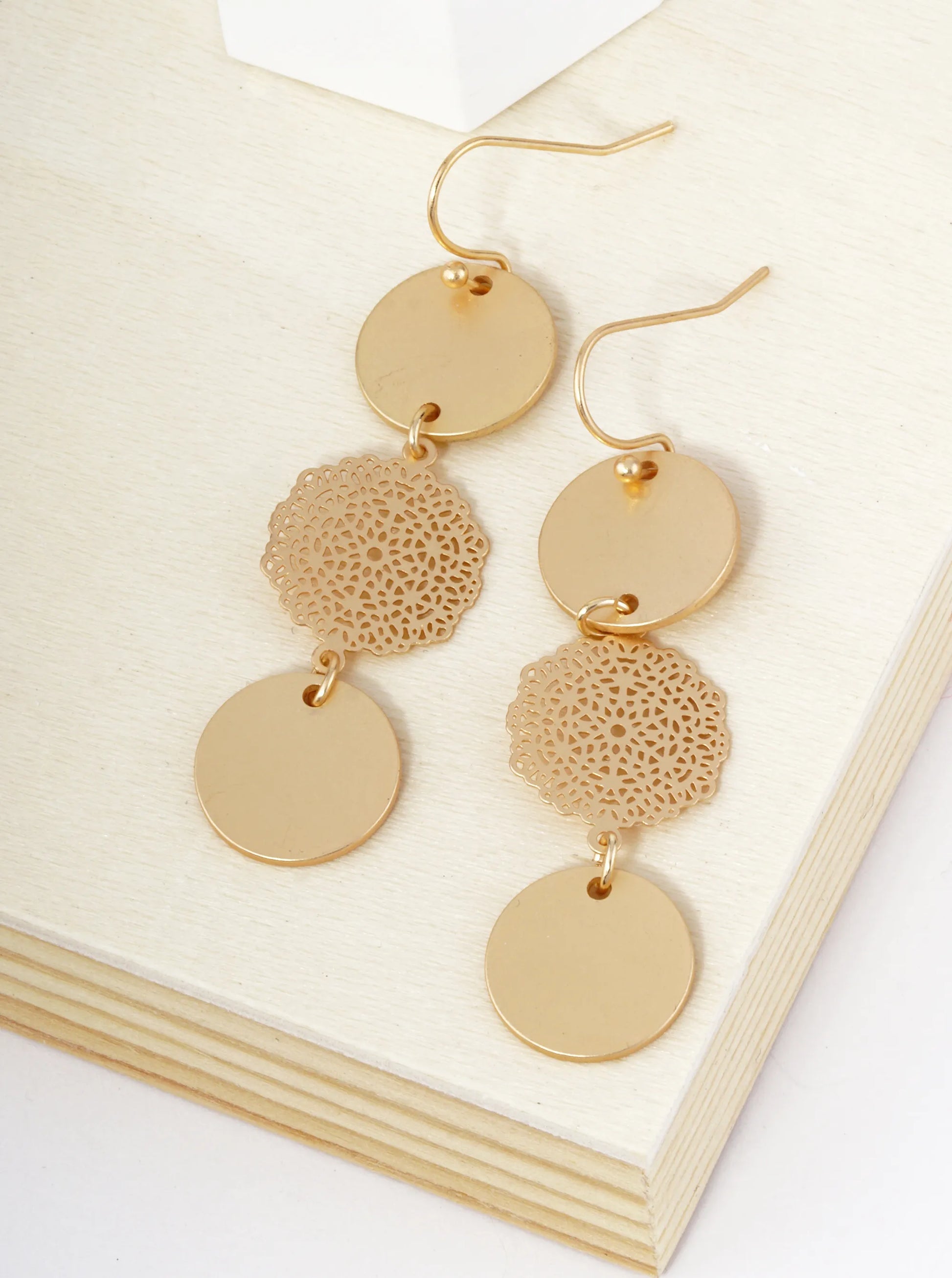 Metal Filigree And Disc Drop Lightweight Dangle Earrings