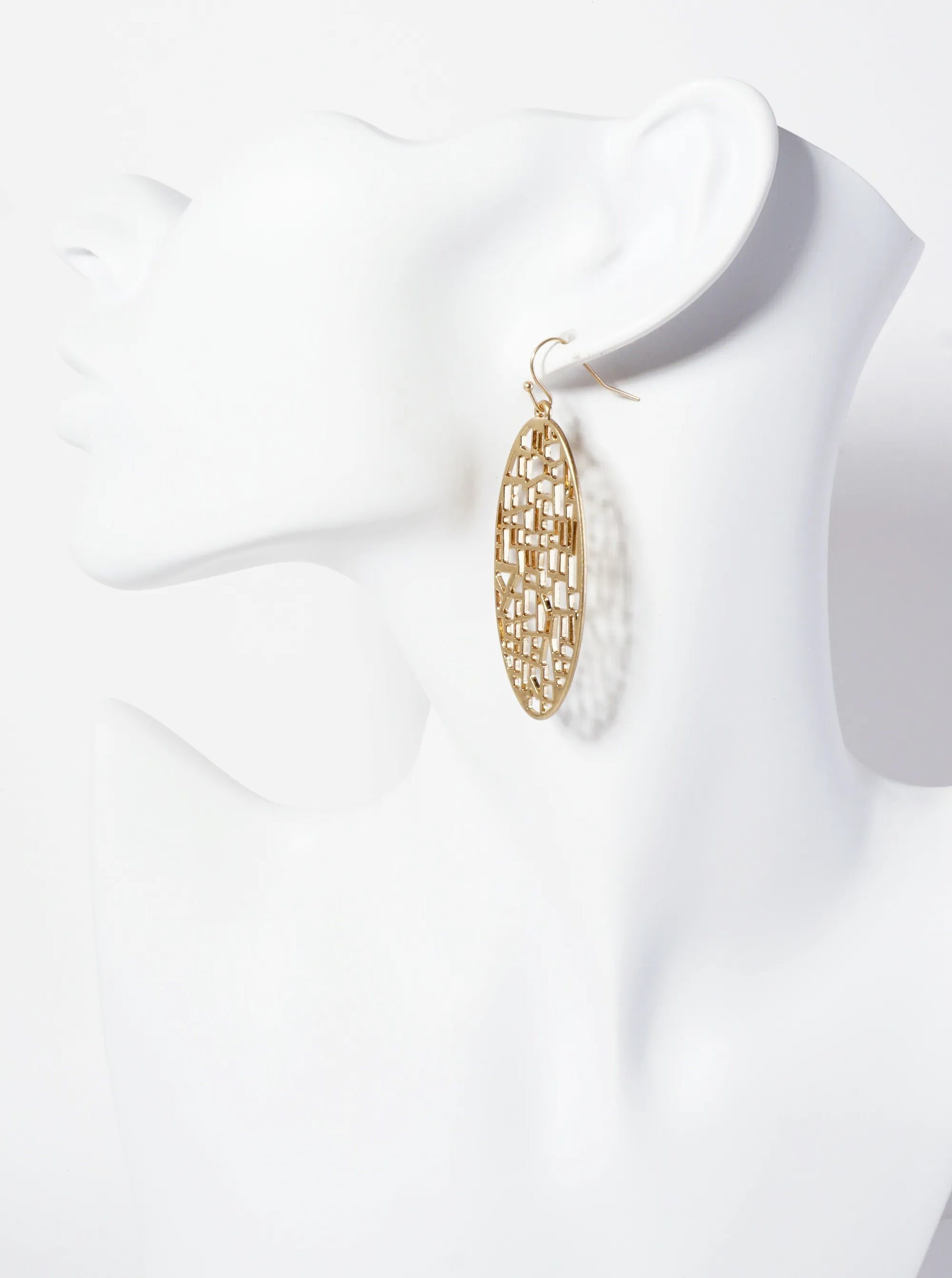 Metal Oval-Shape Geometric Filigree Dangle Earrings