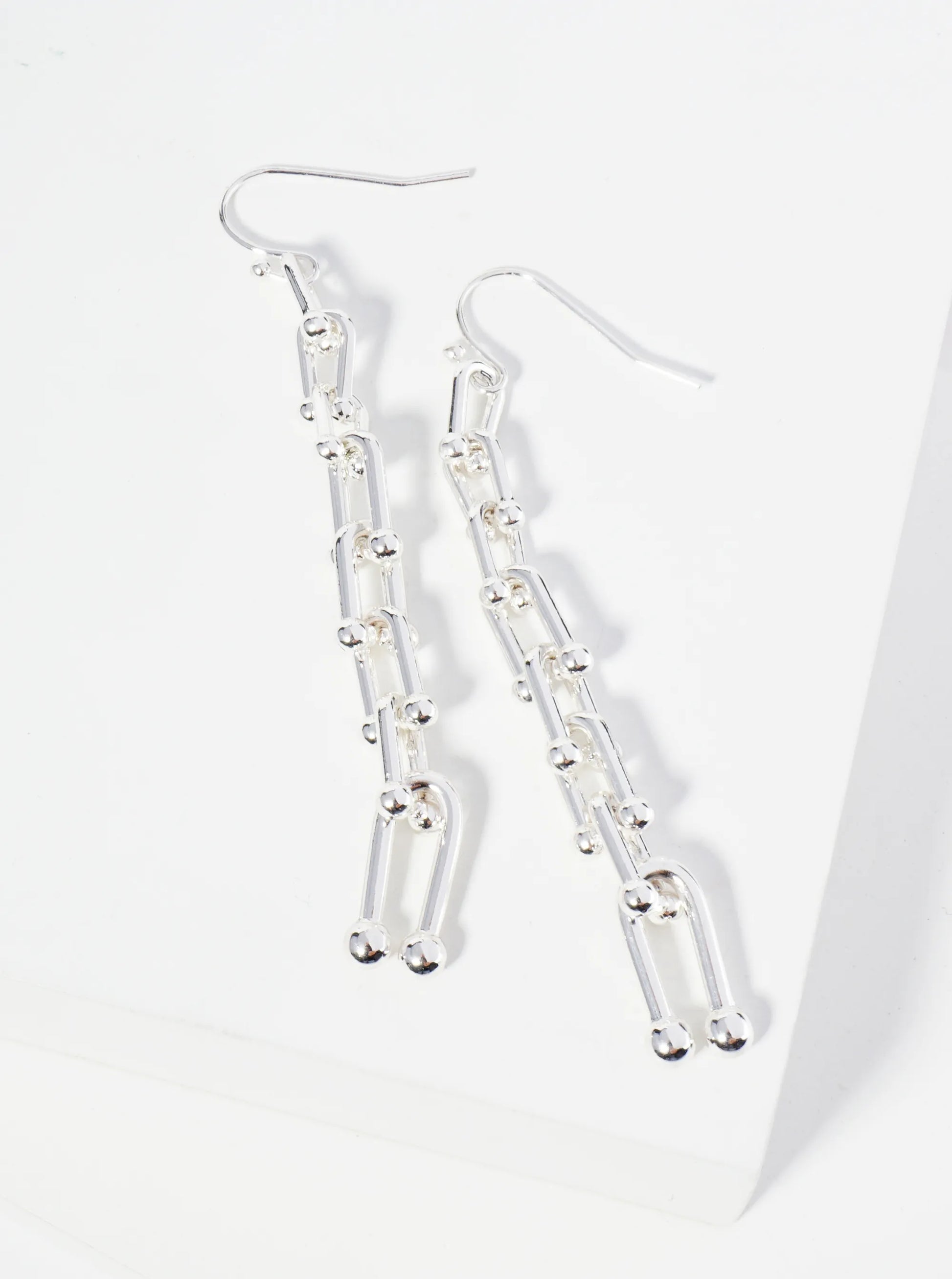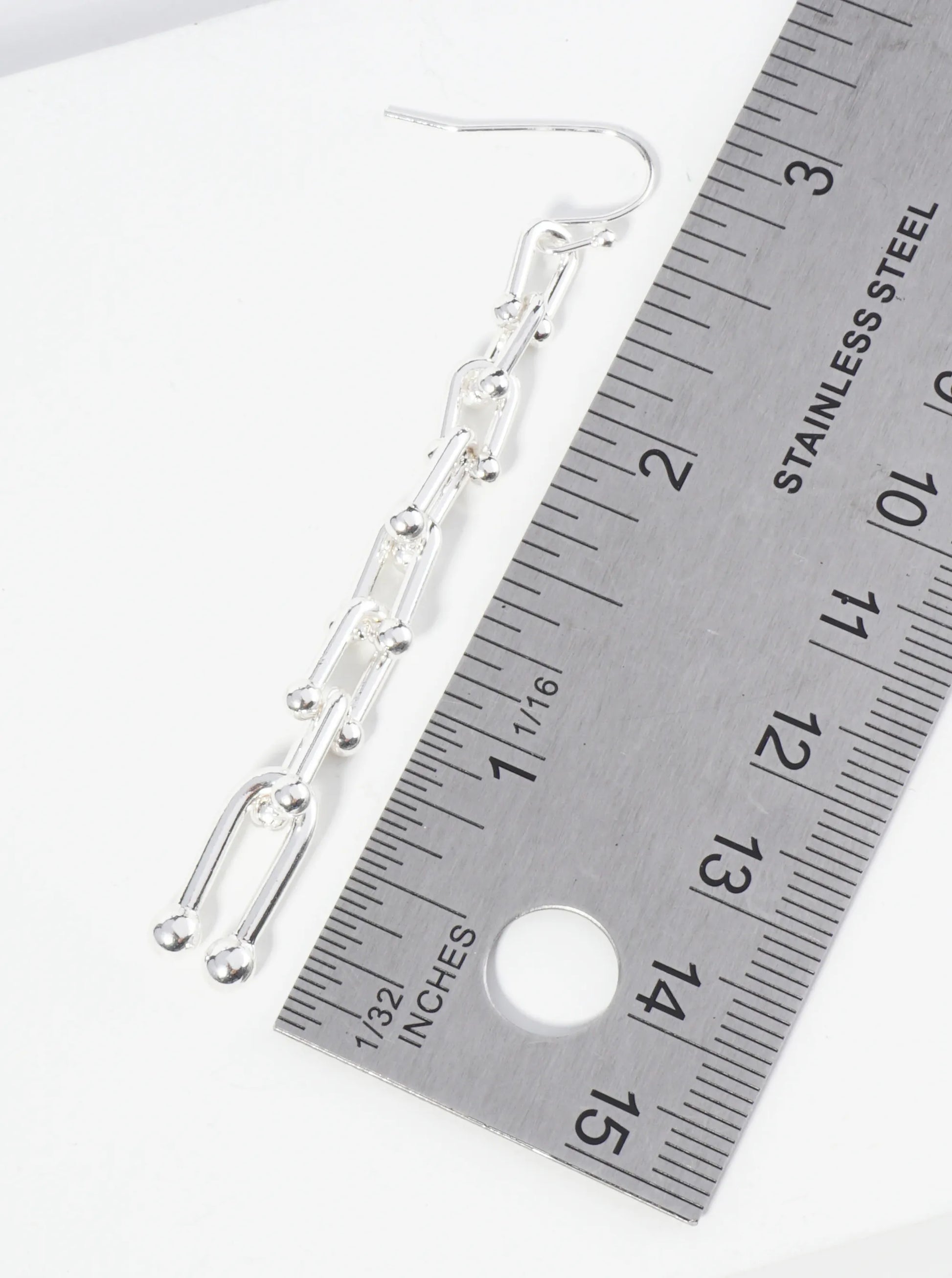 These Earrings Feature A Stylish Design With U-shaped Metal Links Connected By Delicate Chains. The U-shape Links Create A Modern, Geometric Look, While The Dangling Chains Add Movement And Elegance.