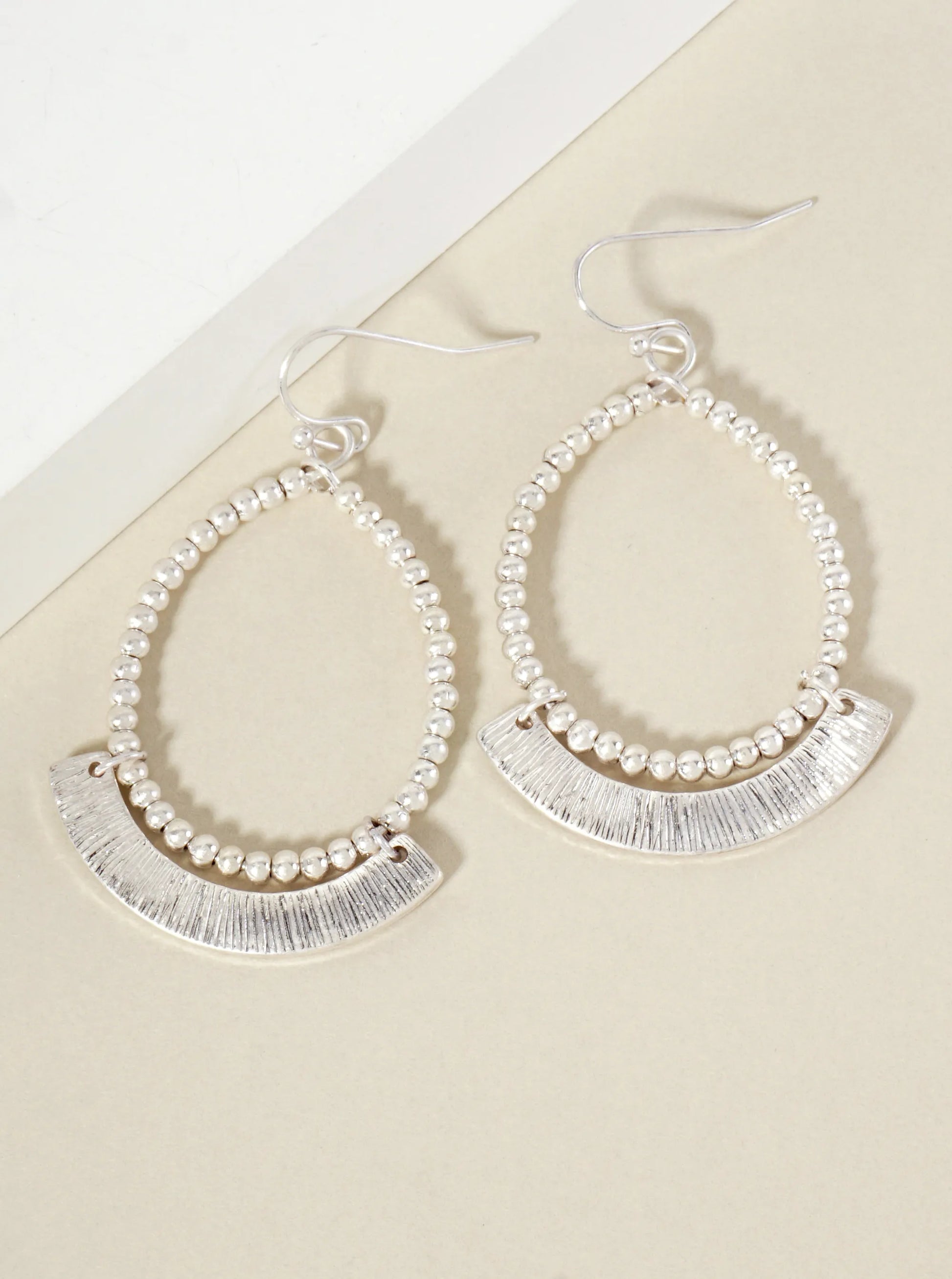 Metallic-Beaded Wire Teardrop Dangle Earrings With Textured Arch Drop
