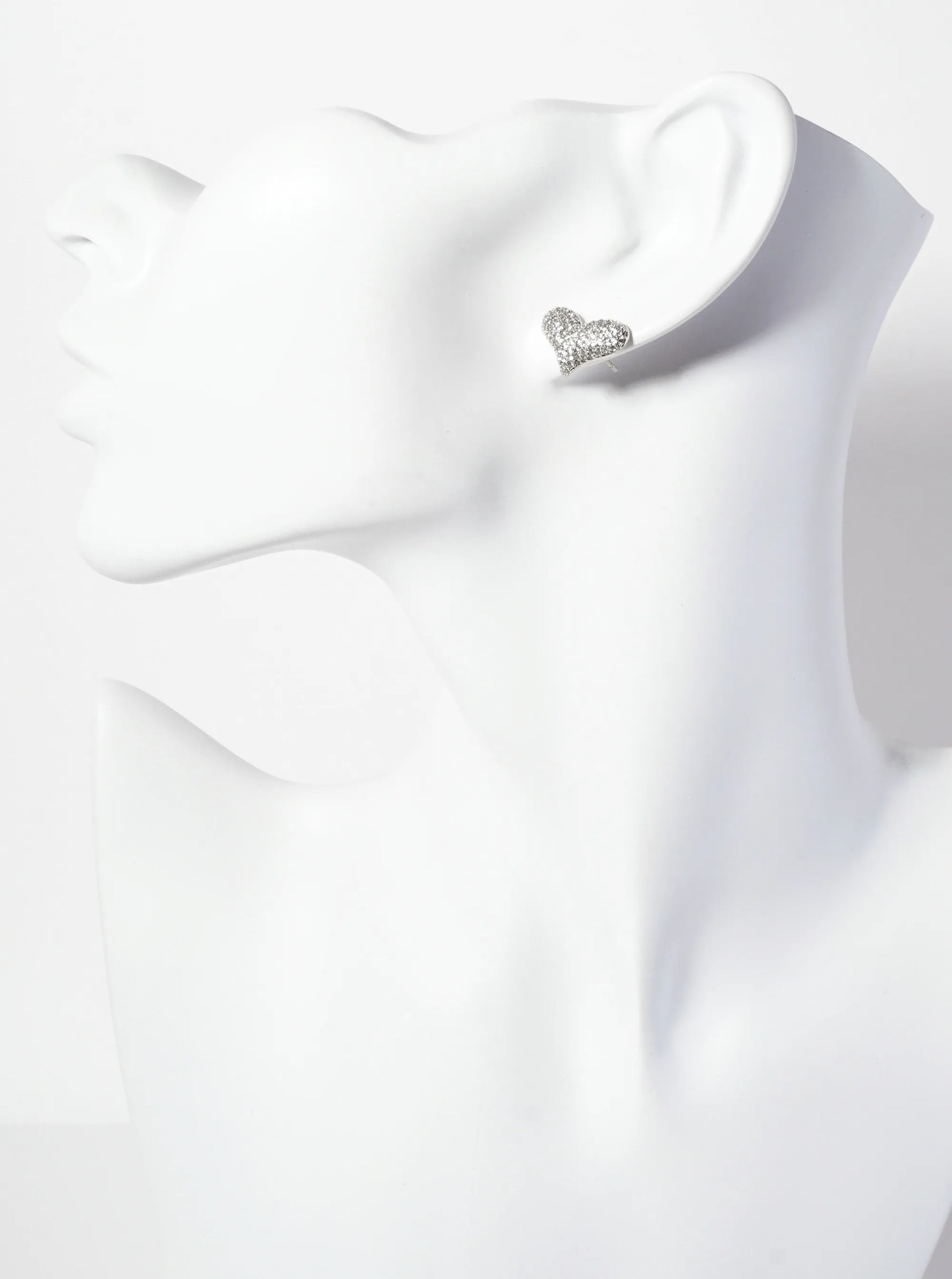 Micro-Pave-Set CZ Puffy Heart 18K-Gold-Dipped Stud Earrings