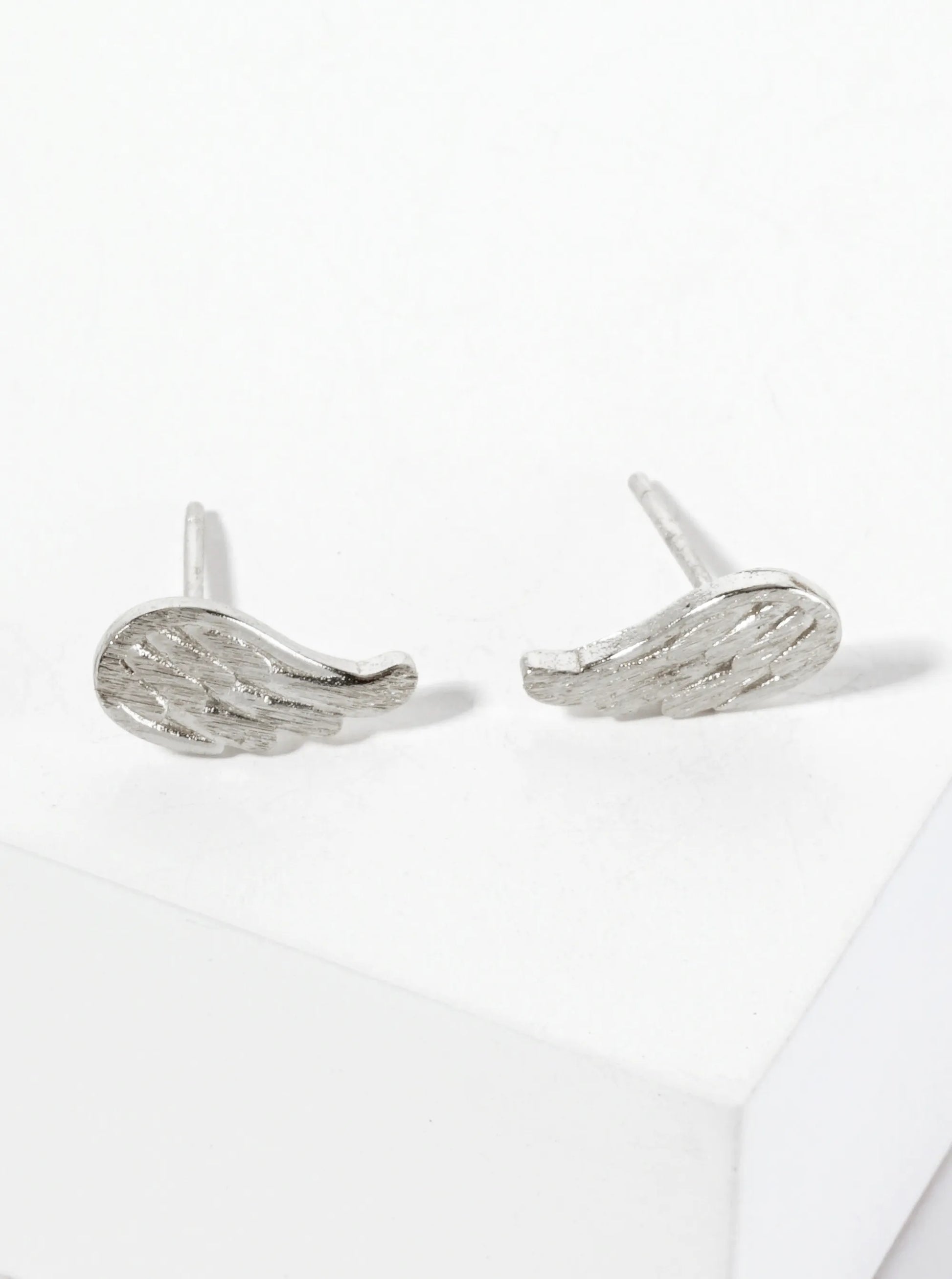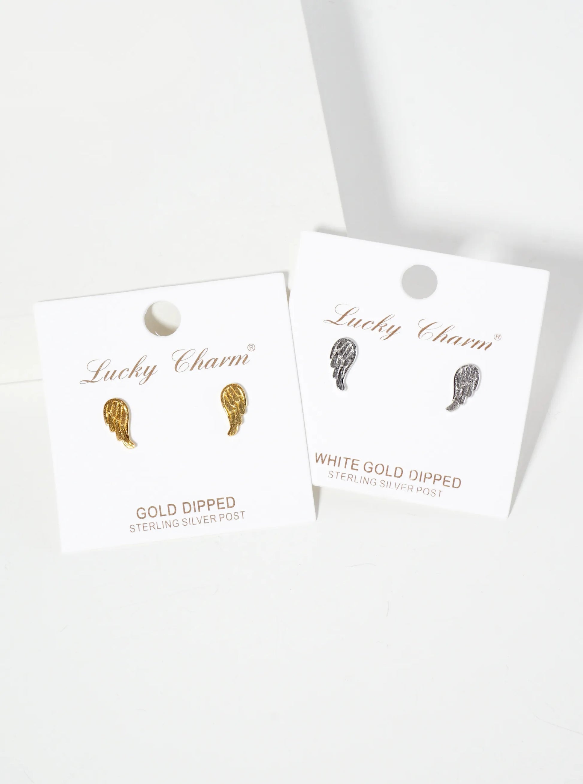 Minimalist 18K-Gold-Dipped Brass Brushed-Texture Angel-Wings Stud Earrings