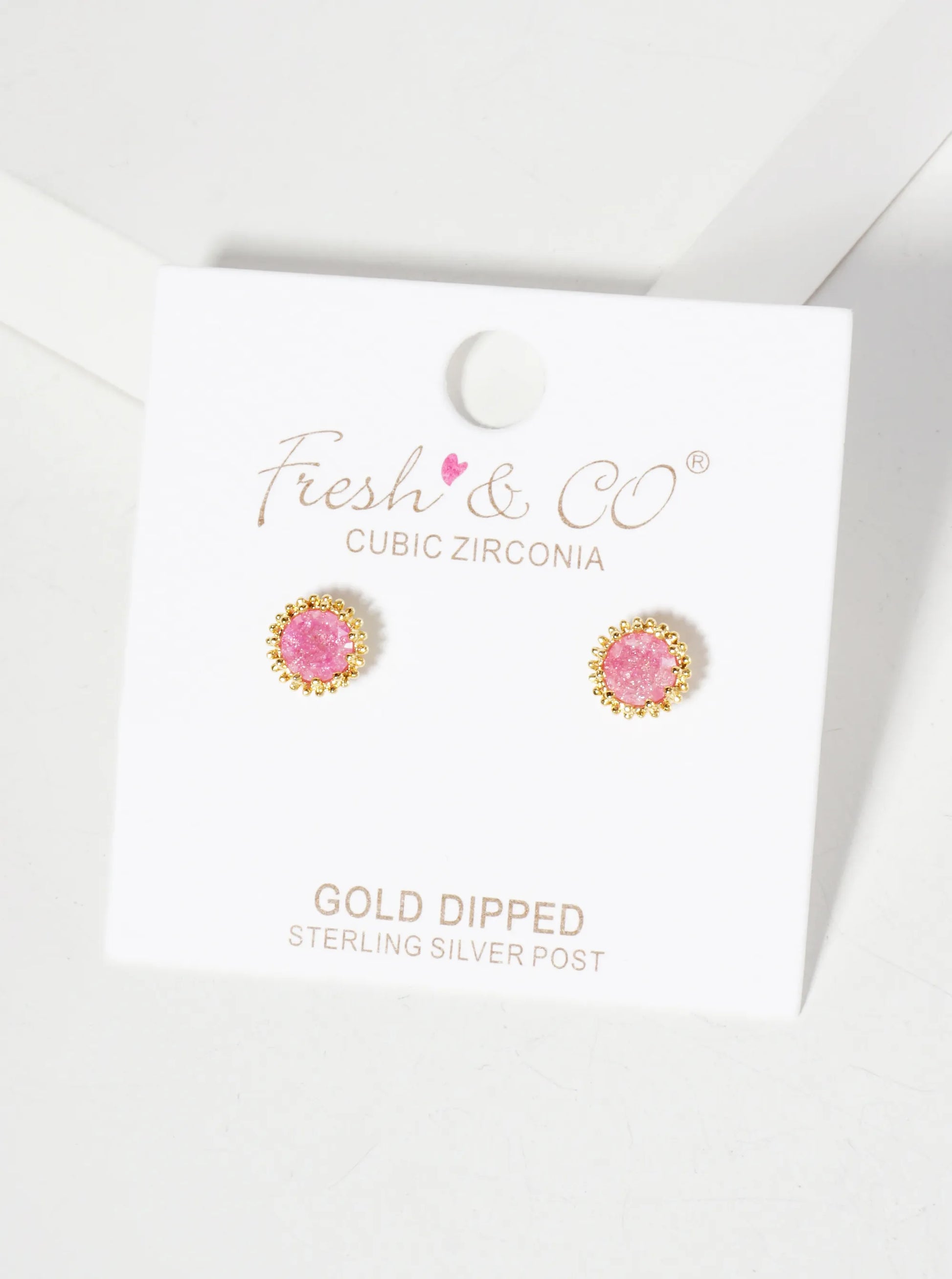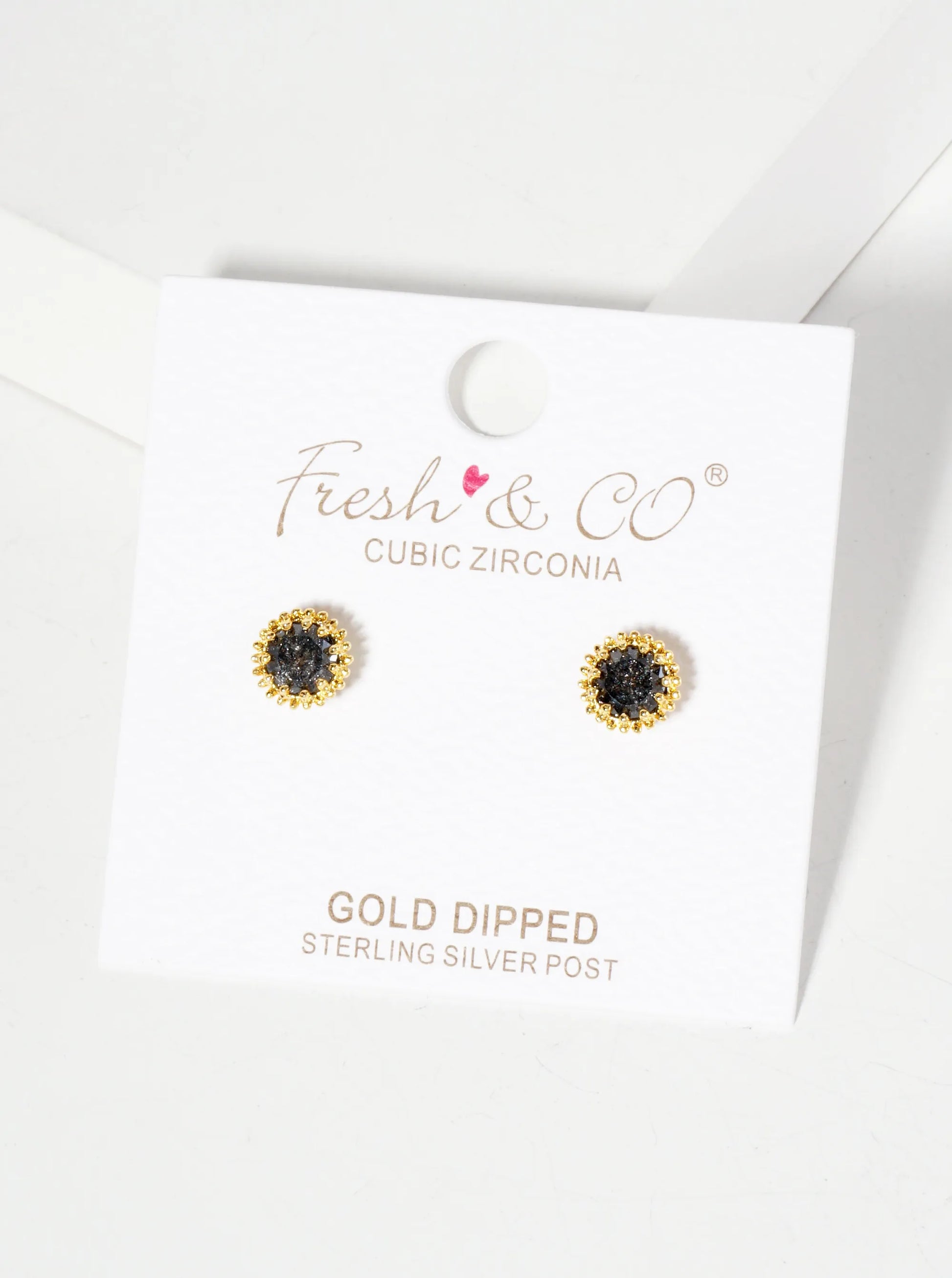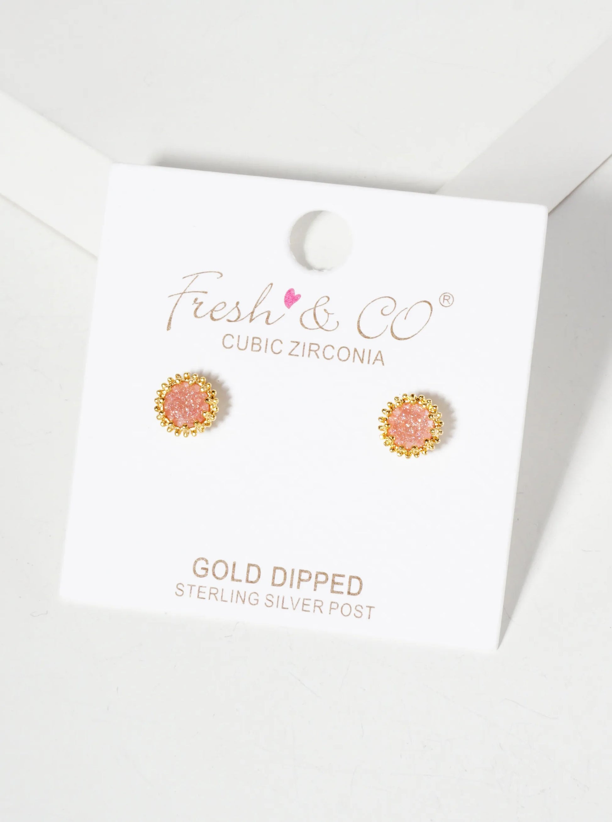 Minimalist 18K-Gold-Dipped Sparkling Glass-Bead Stone Stud Earrings