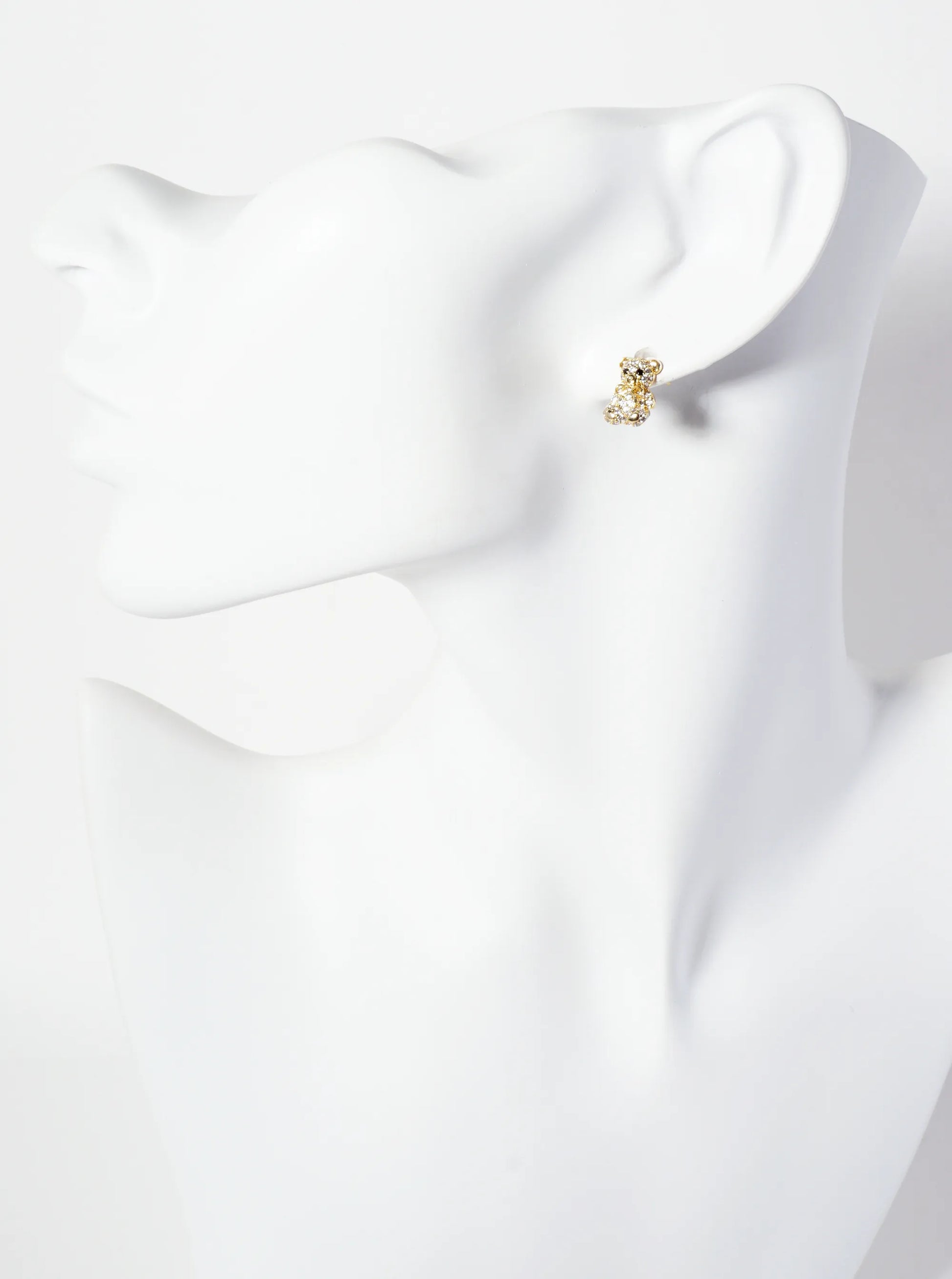 Minimalist Pave-Set Cubic-Zirconia 10mm Teddy-Bear With Bow 18K-Gold-Dipped Stud Earrings