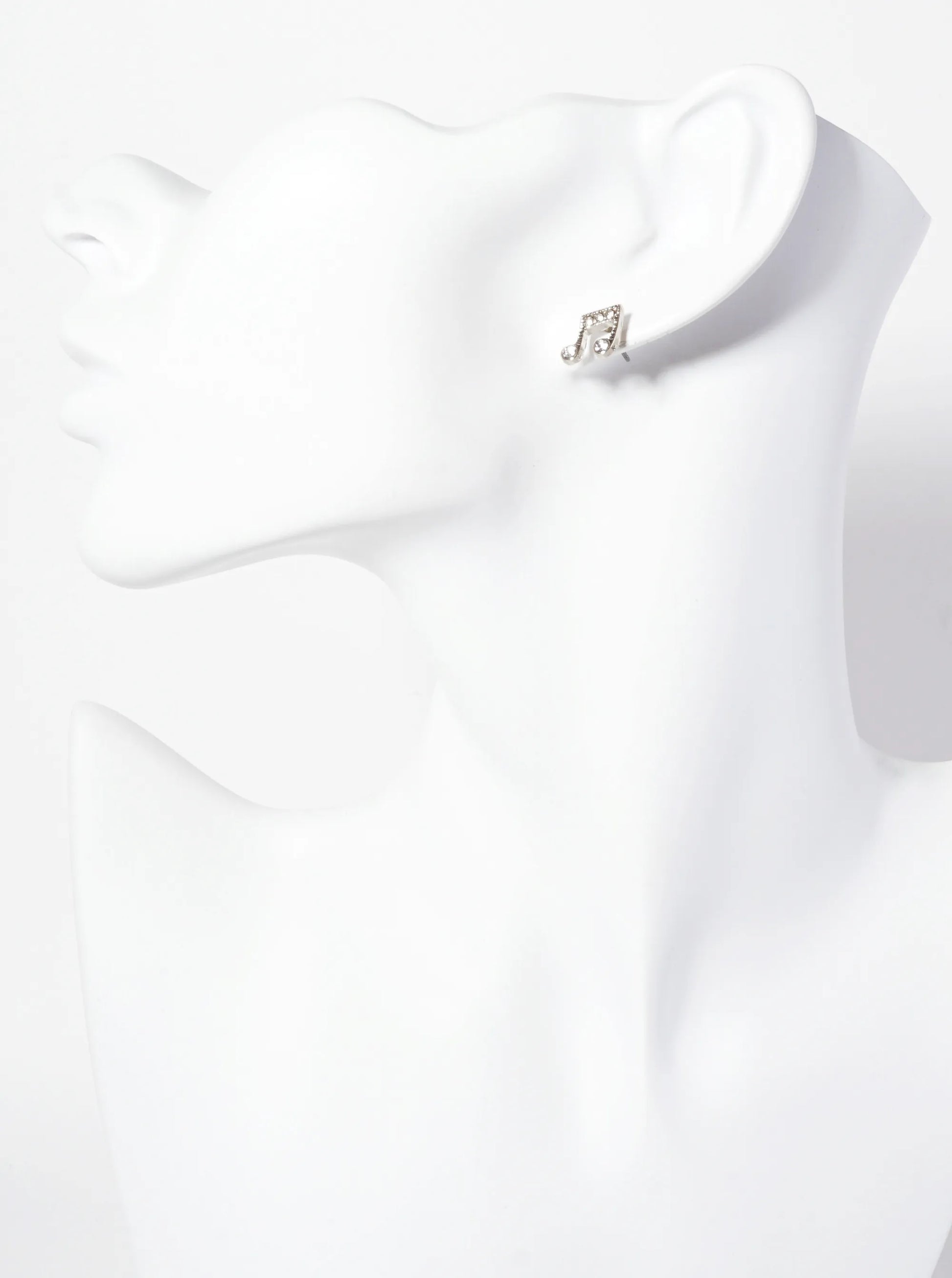 Music-Inspired Crystal-Pave Symmetrical Musical-Note Stud Earrings