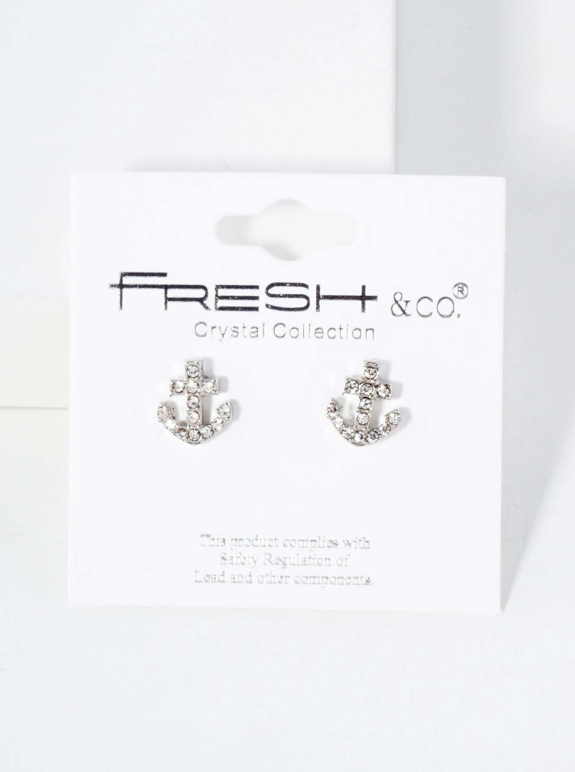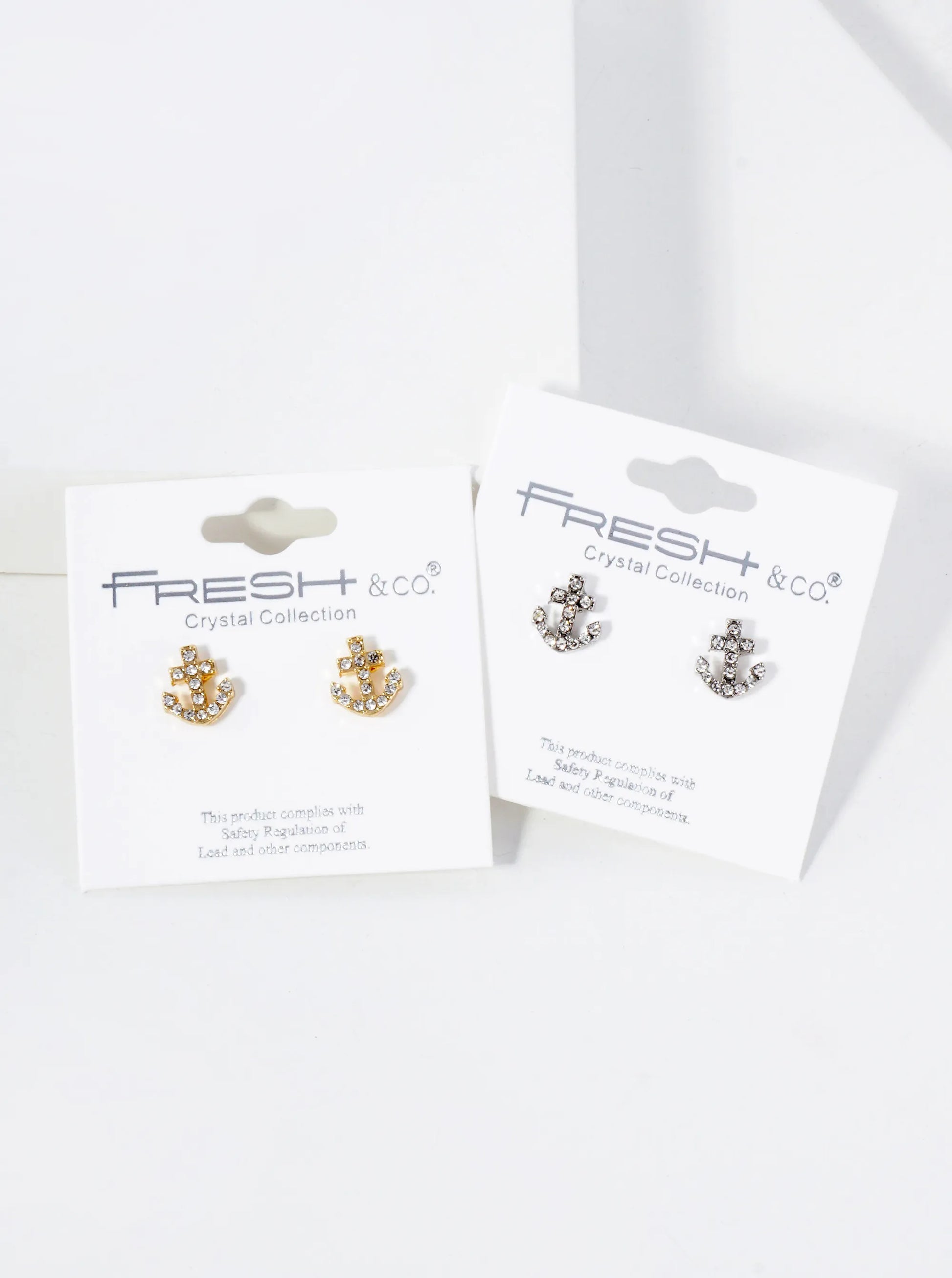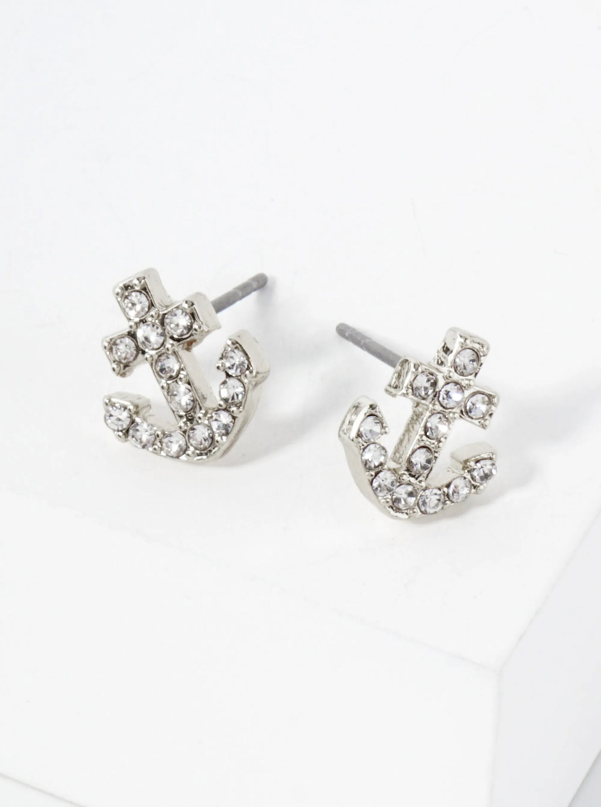 Nautical Charm Meets Radiant Sparkle In These 10mm Anchor Stud Earrings, Detailed With Crystal-pave Accents That Glimmer With Every Turn. The Bold Silhouette Adds A Statement Touch, While The Secure Post-back Design Ensures All-day Comfort—perfect For Adding Seaside-inspired Shine To Everyday And Vacation Styles.