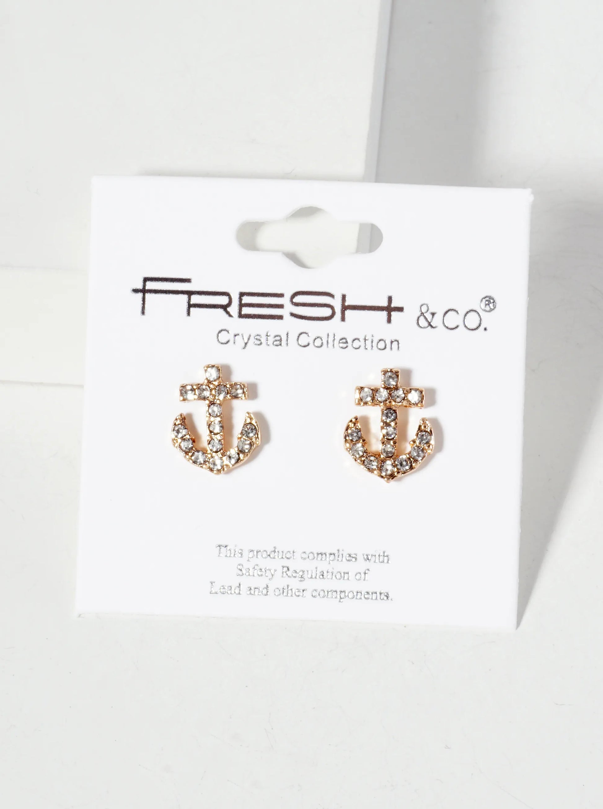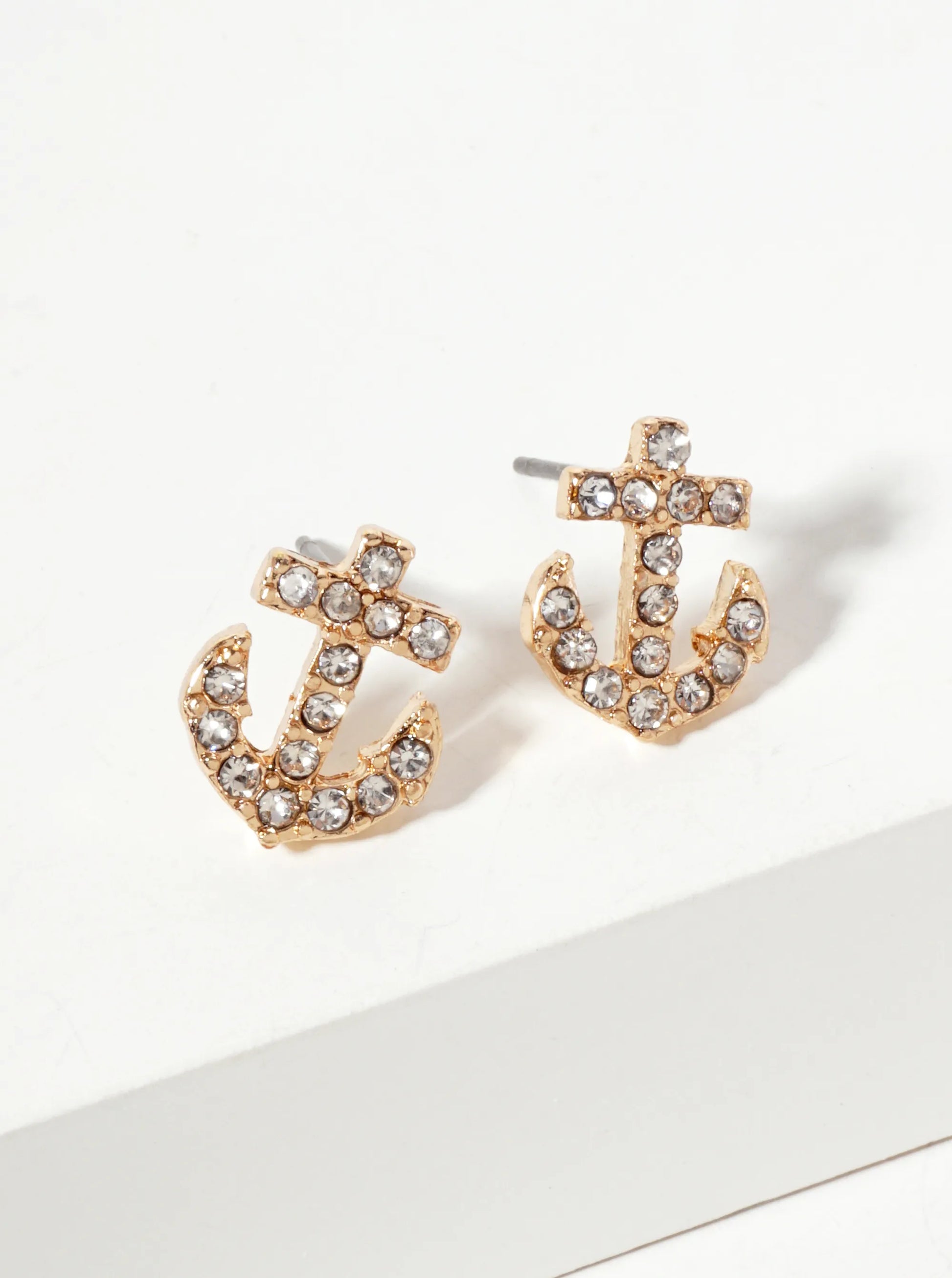 These Earrings Are A Stylish And Elegant Pair Of Earrings Inspired By Maritime Elements. These Studs Feature An Anchor Design, A Classic Symbol Of The Sea, And Are Adorned With Sparkling Crystal Pavé Detailing. The Crystals, Arranged To Give A Radiant Effect, Enhance The Anchor Shape, Making The Earrings Both Sophisticated And Eye-catching.